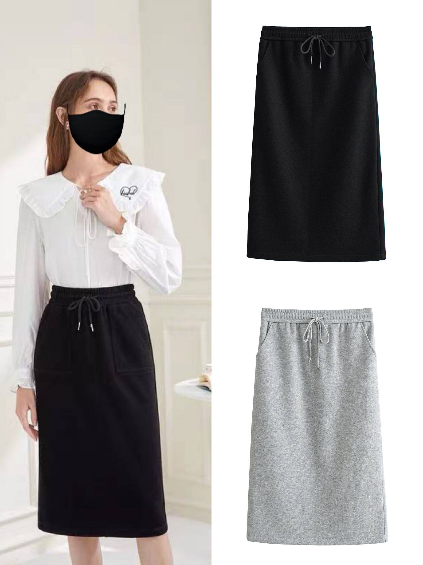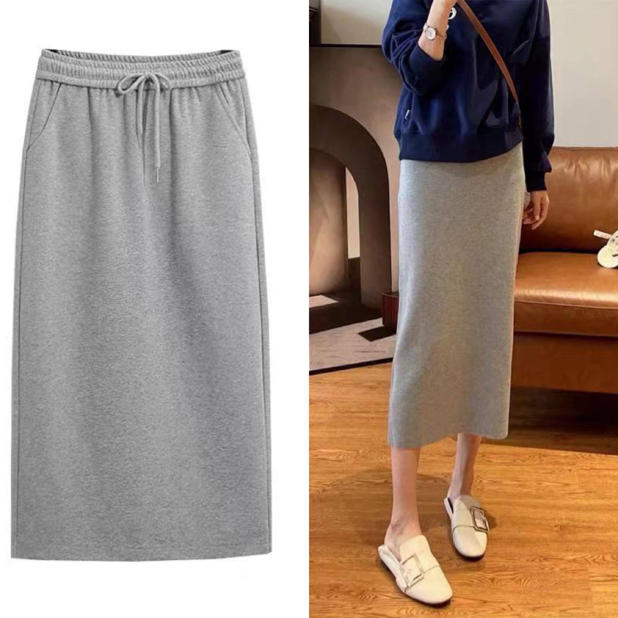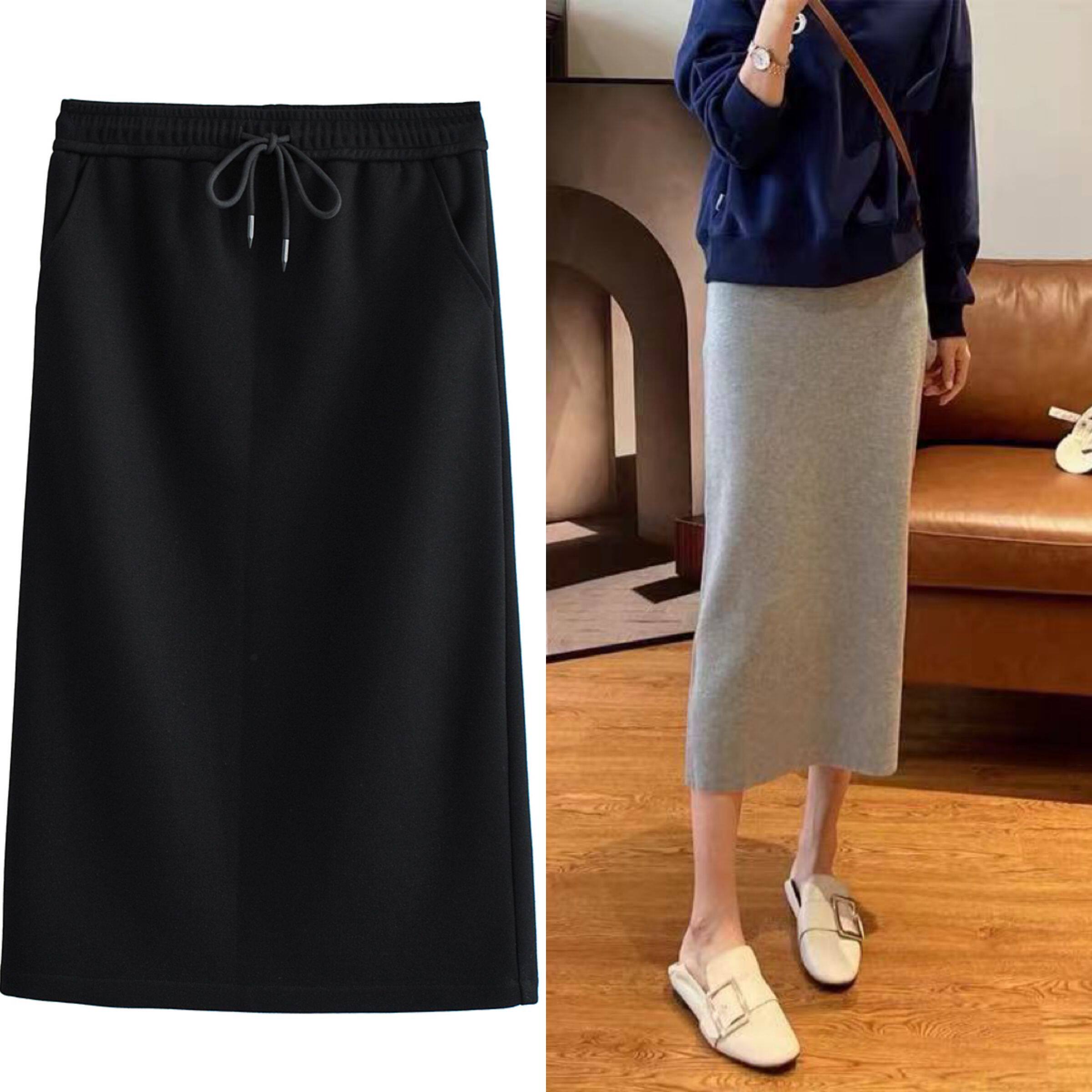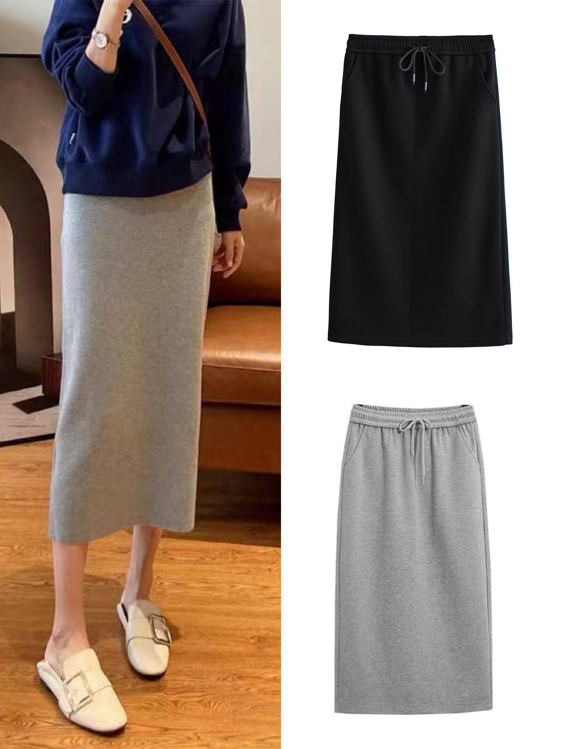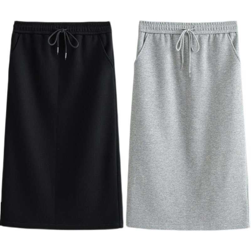Трикотажная юбка, коллекция 2022, высокая талия, свободный прямой крой