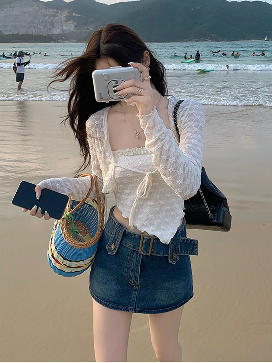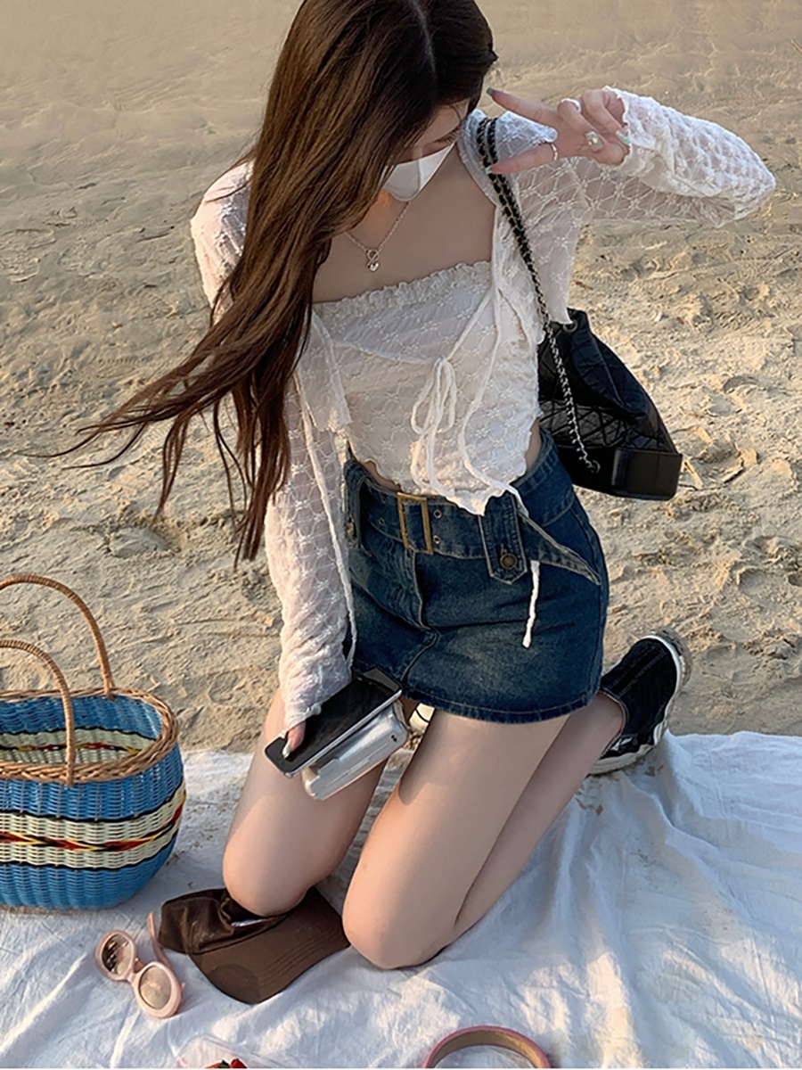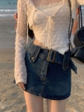 Джинсовая юбка, ретро мини-юбка, коллекция 2023, большой размер, с акцентом на бедрах