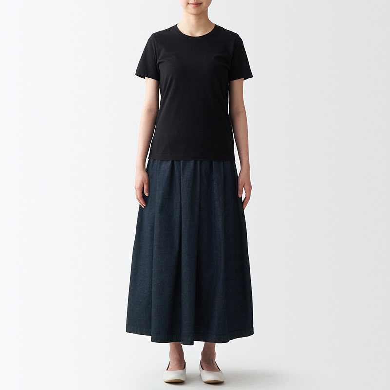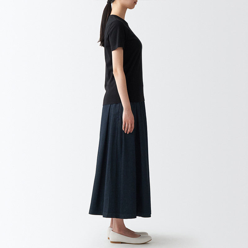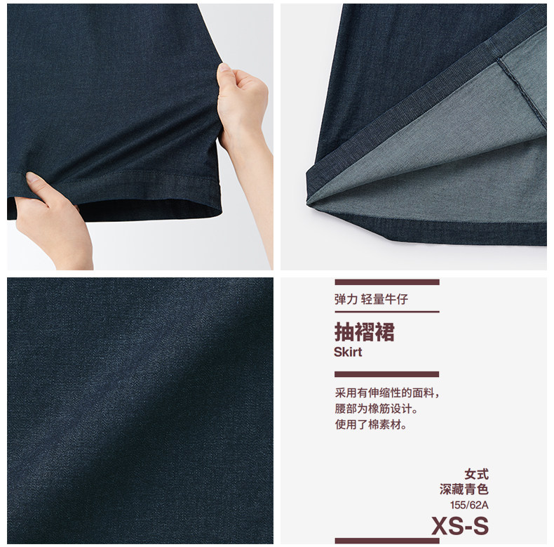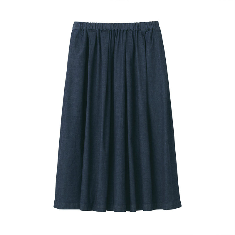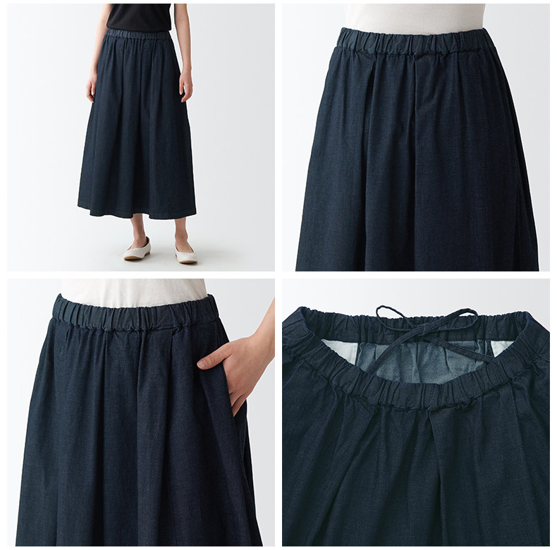 Муджи женская эластичная легкая джинсовая плиссированная юбка