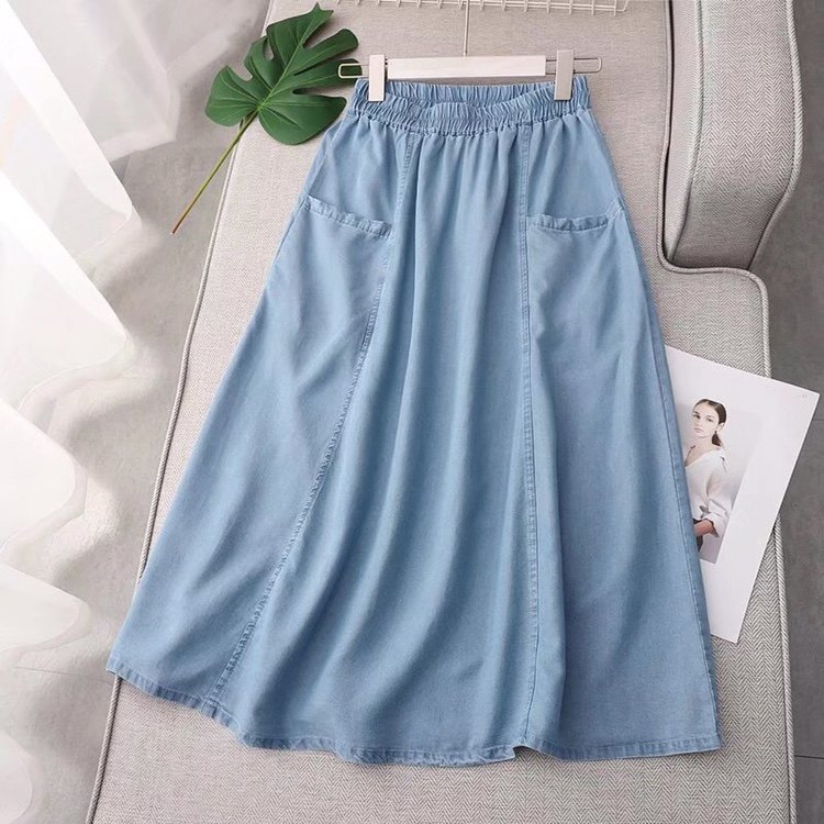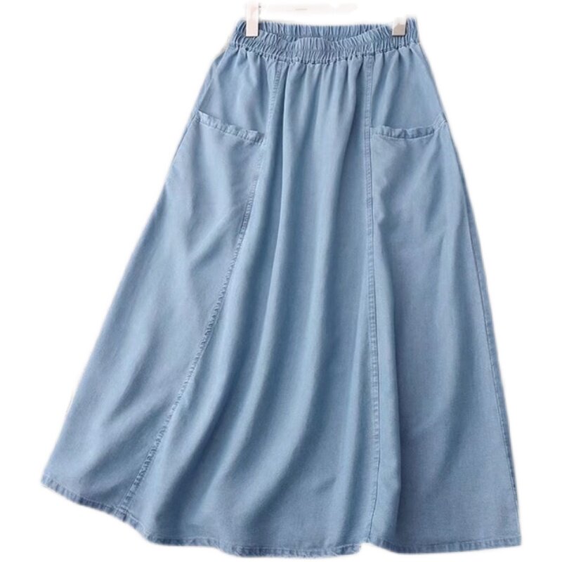 Летняя тонкая джинсовая юбка, ретро длинная длинная юбка, коллекция 2022, высокая талия, А-силуэт