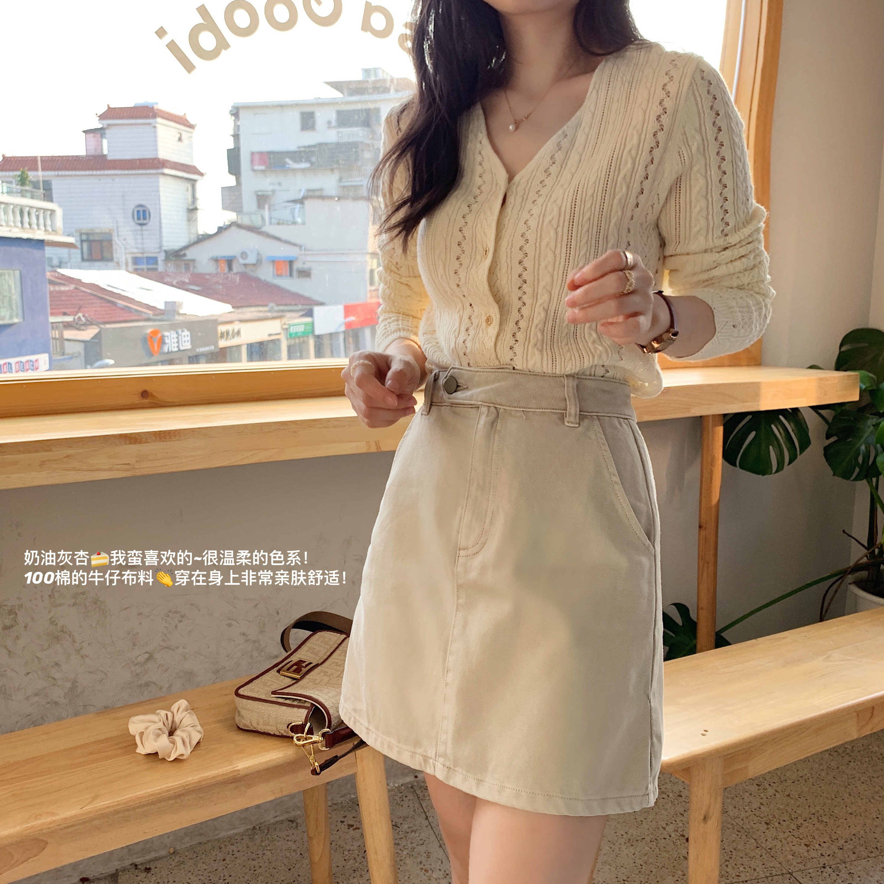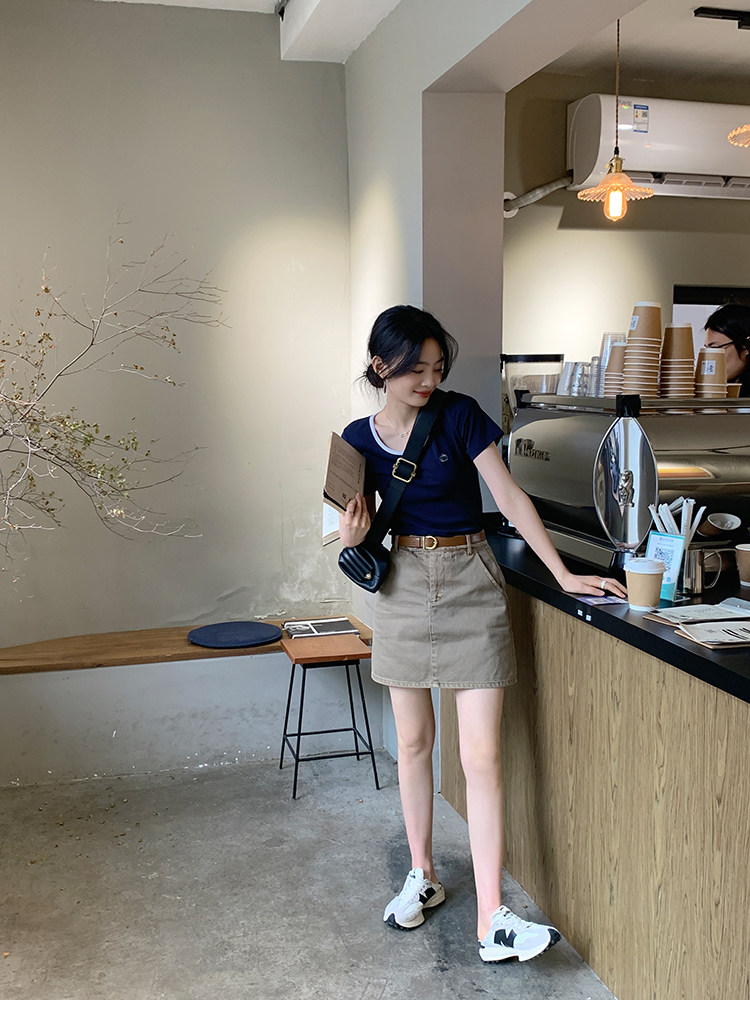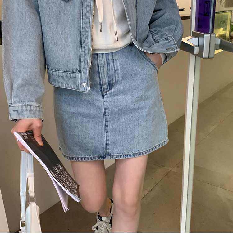 Весенняя приталенная короткая джинсовая юбка, семейный стиль, высокая талия, А-силуэт