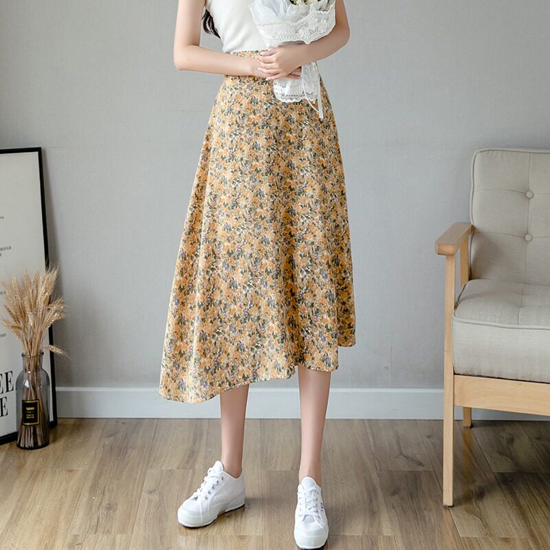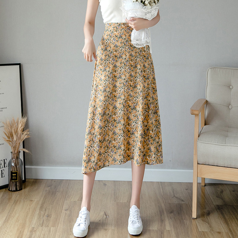 Шифоновая летняя длинная юбка в складку, модная длинная юбка, плиссированная юбка, средней длины, длина макси, высокая талия, А-силуэт
