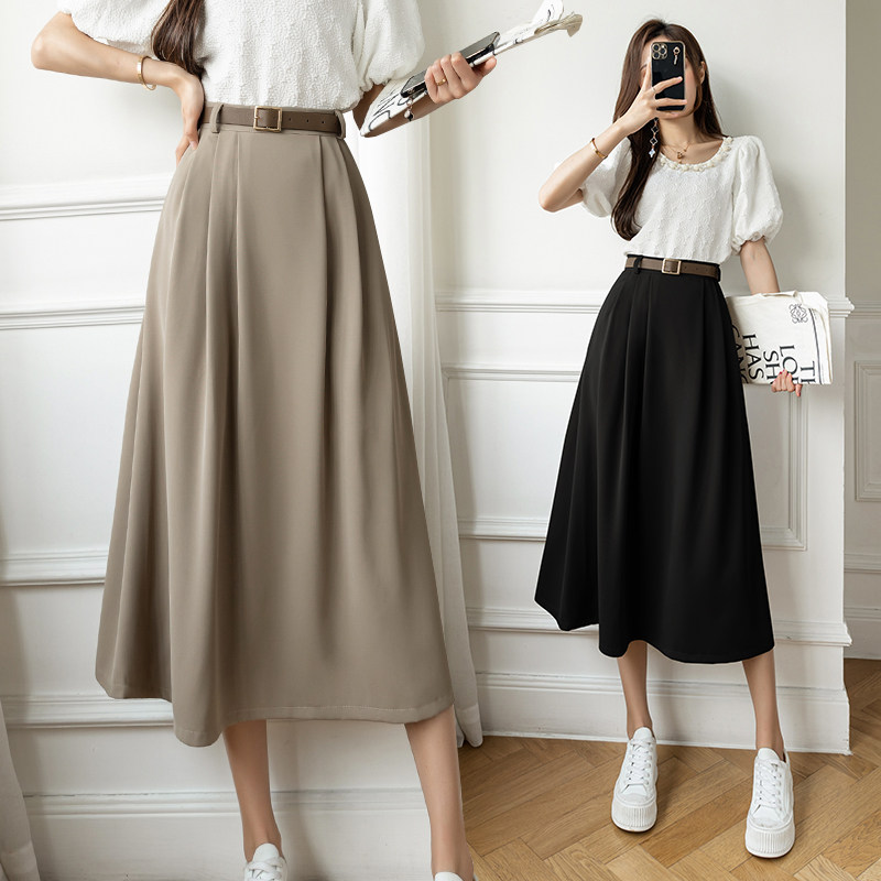 Хаки осенний приталенный пиджак классического кроя, длинная длинная юбка, высокая талия, А-силуэт, длина миди, длина макси