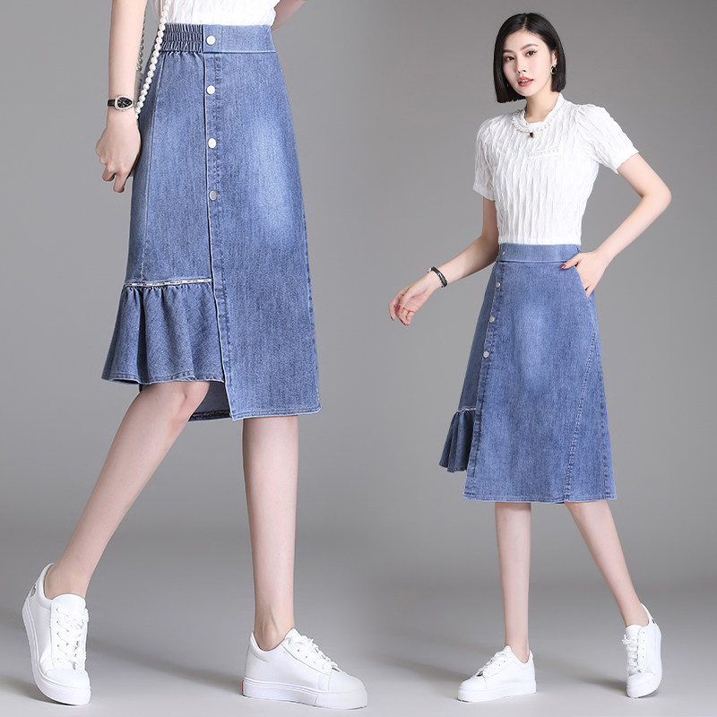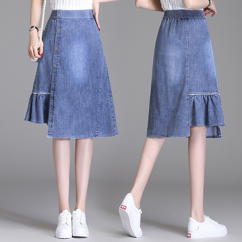 Осенняя джинсовая юбка, длинная юбка в складку, А-силуэт, высокая талия, длина макси