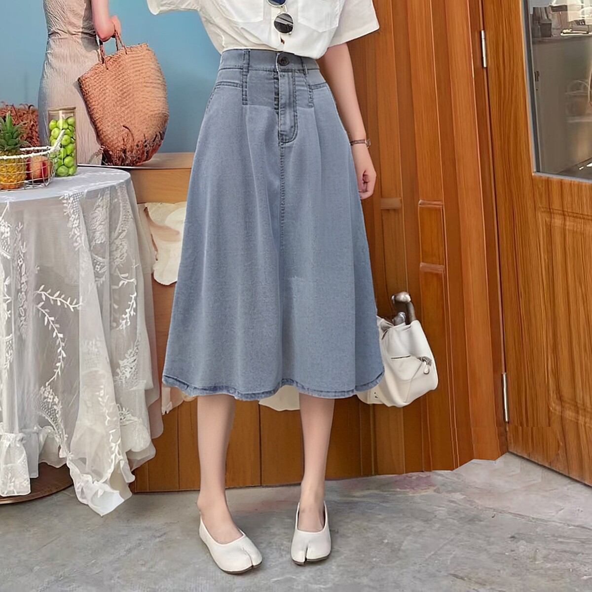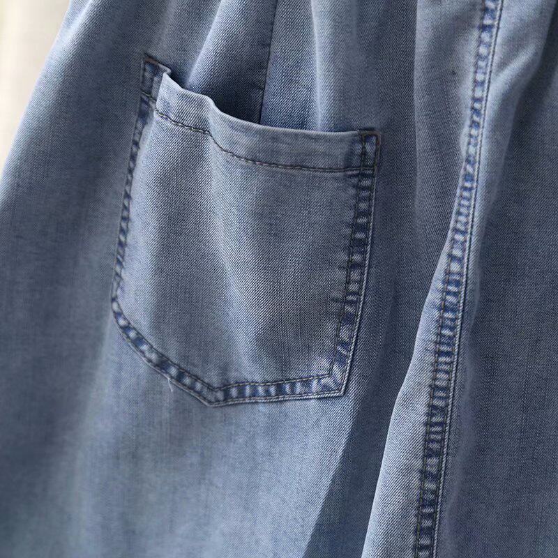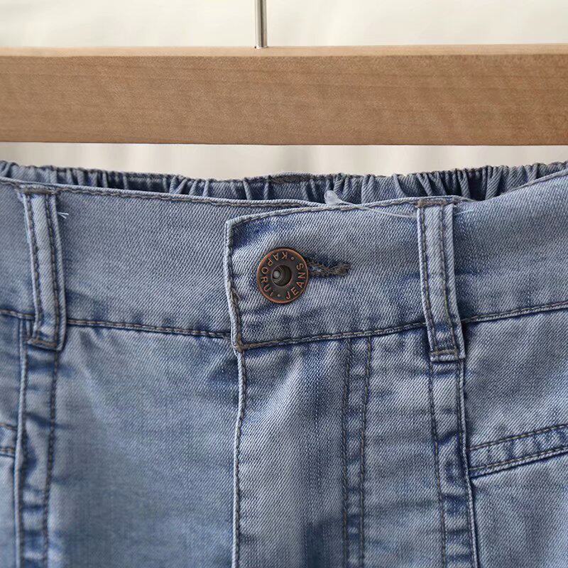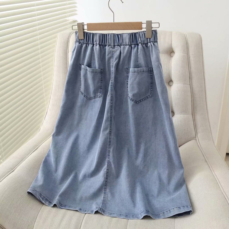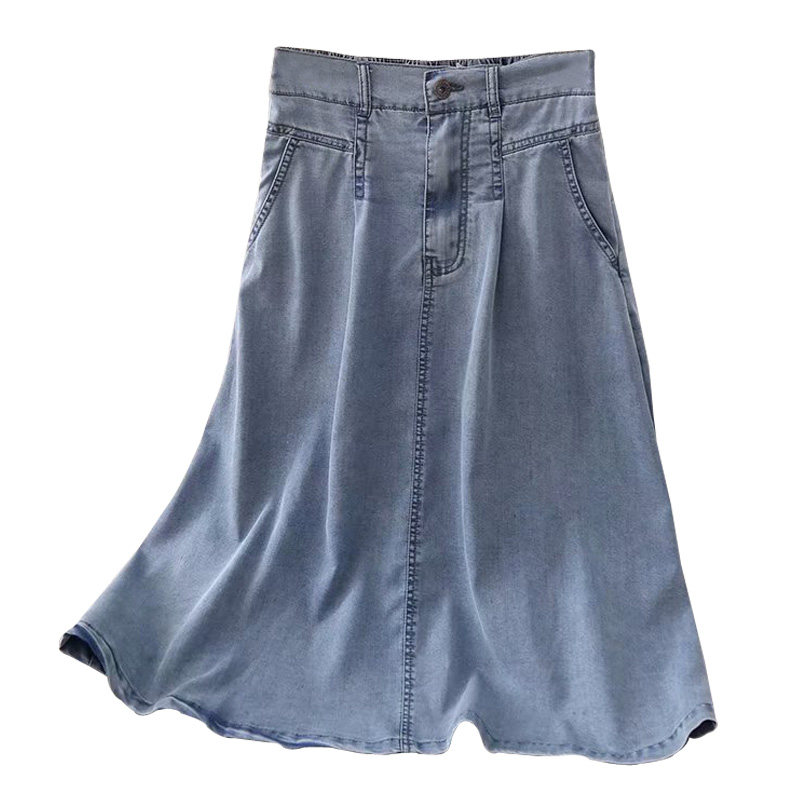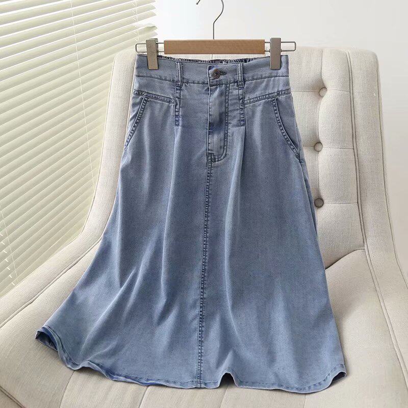 Тонкая летняя джинсовая юбка, подходит для подростков, высокая талия, длина миди
