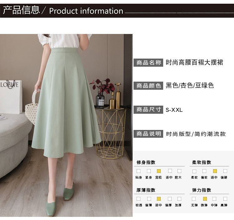 Вместительная и большая юбка в складку, А-силуэт, длина миди, высокая талия, яркий броский стиль