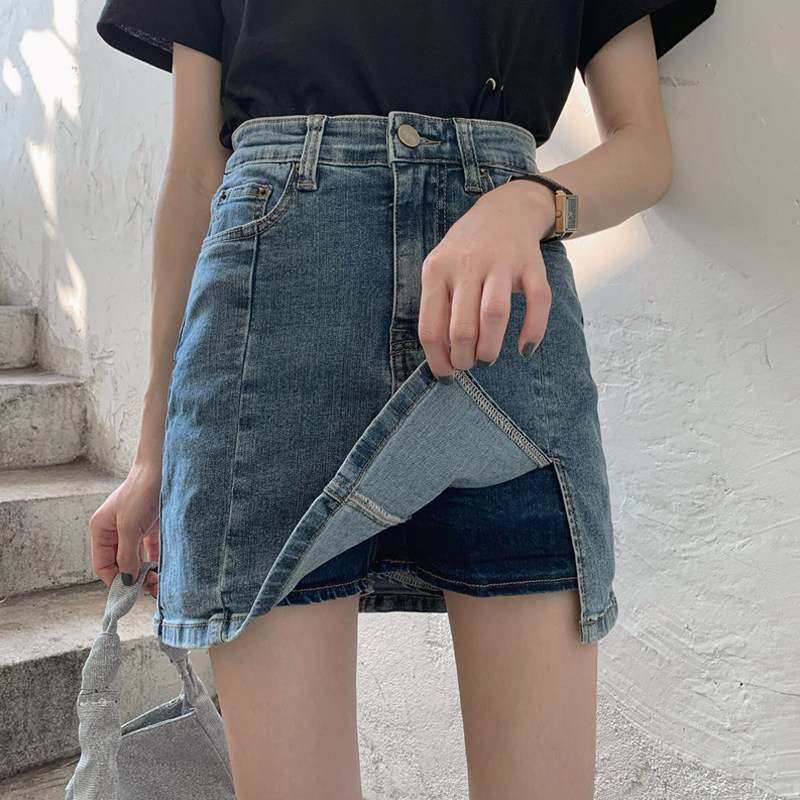 Ретро джинсовая юбка, приталенная осенняя мини-юбка, штаны, подходит для подростков, А-силуэт