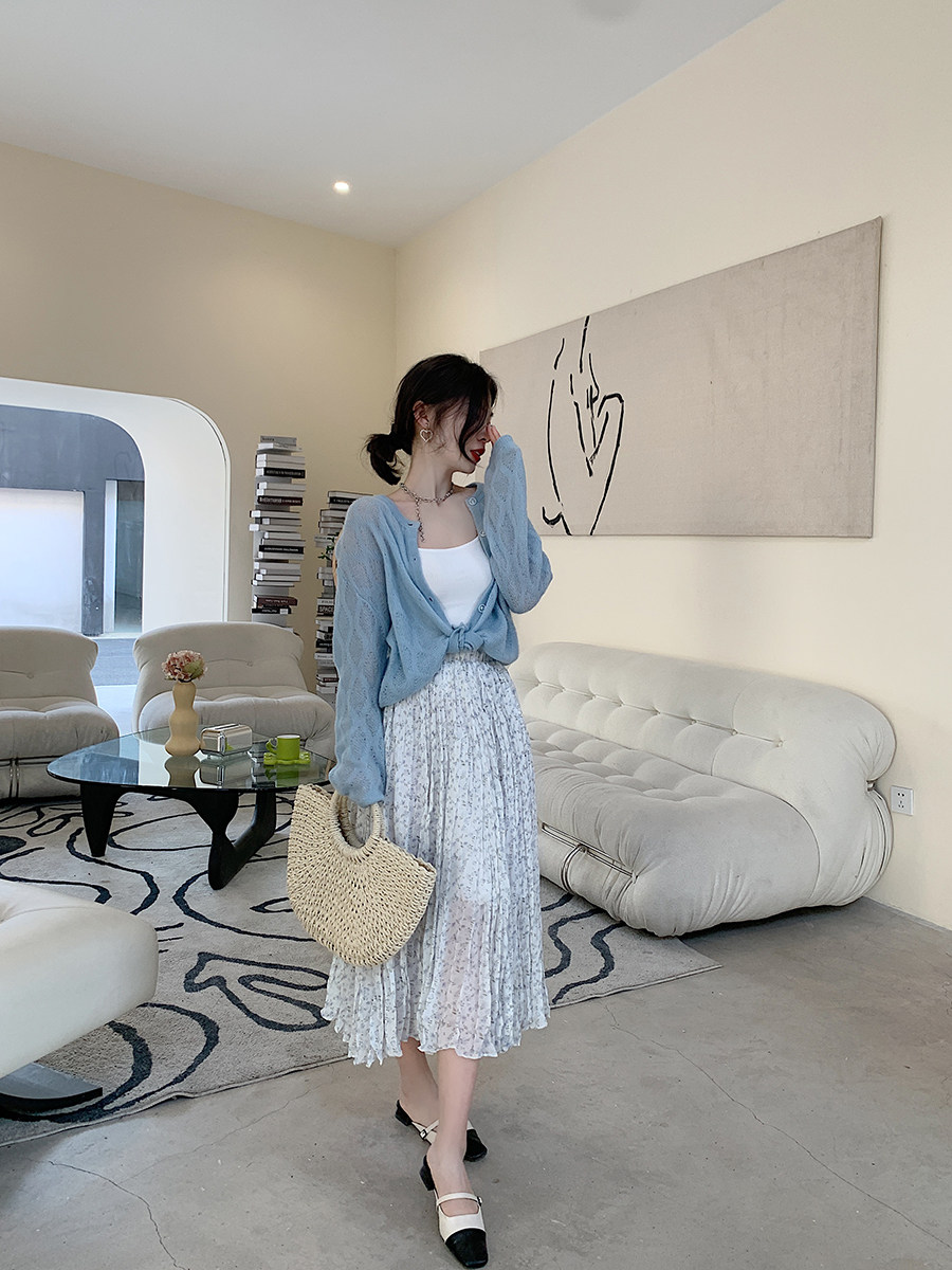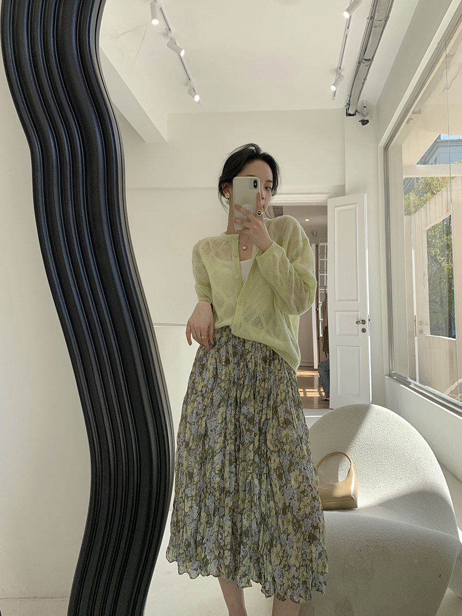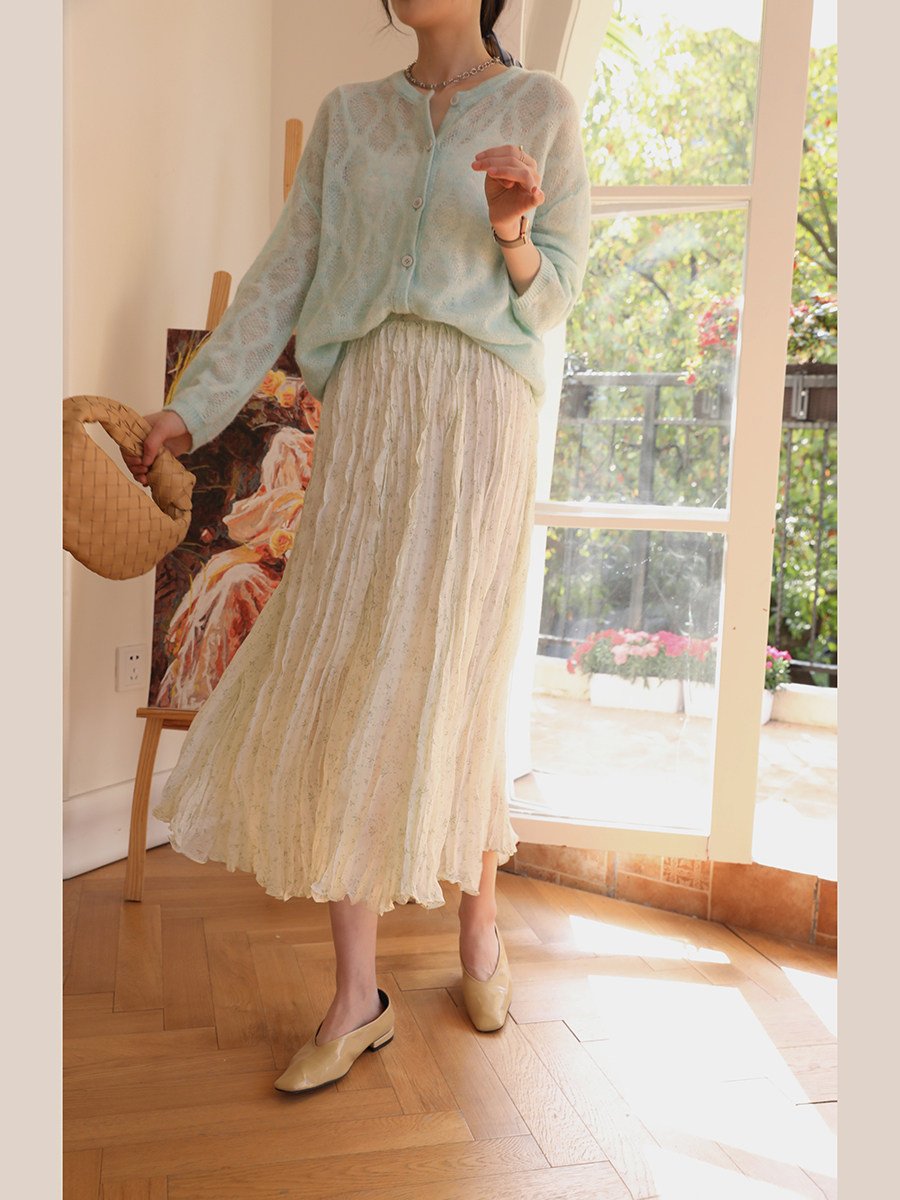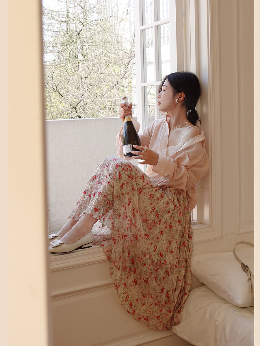 Весенняя приталенная юбка в складку, длинная юбка, плиссированная юбка, высокая талия, цветочный принт, средней длины