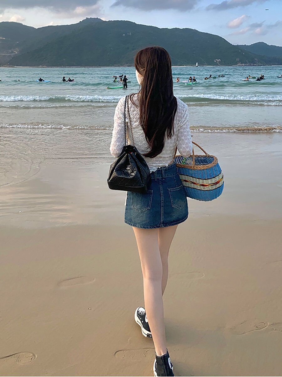 Ретро весенняя джинсовая юбка, приталенные штаны, летняя мини-юбка, с акцентом на бедрах, большой размер