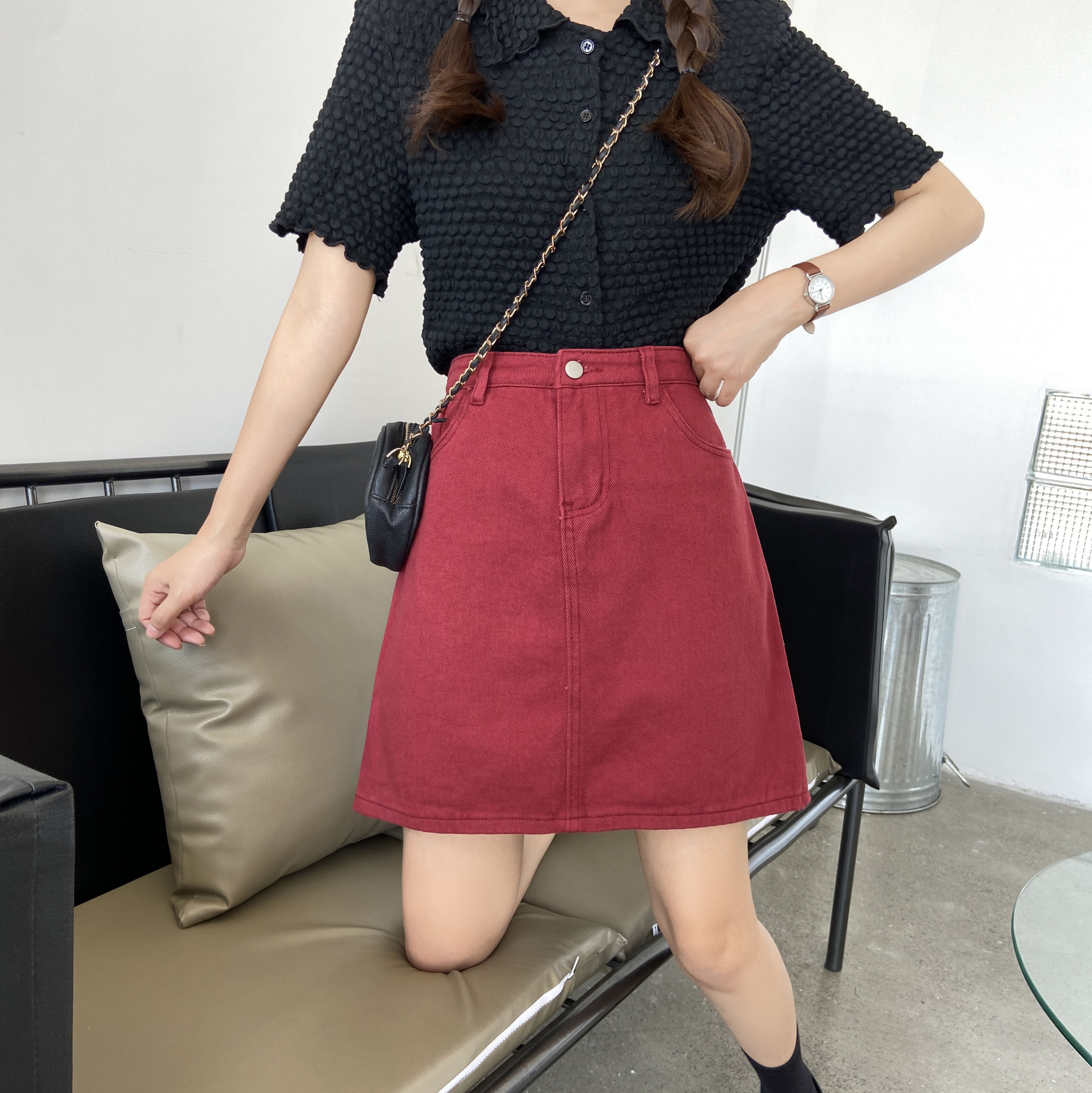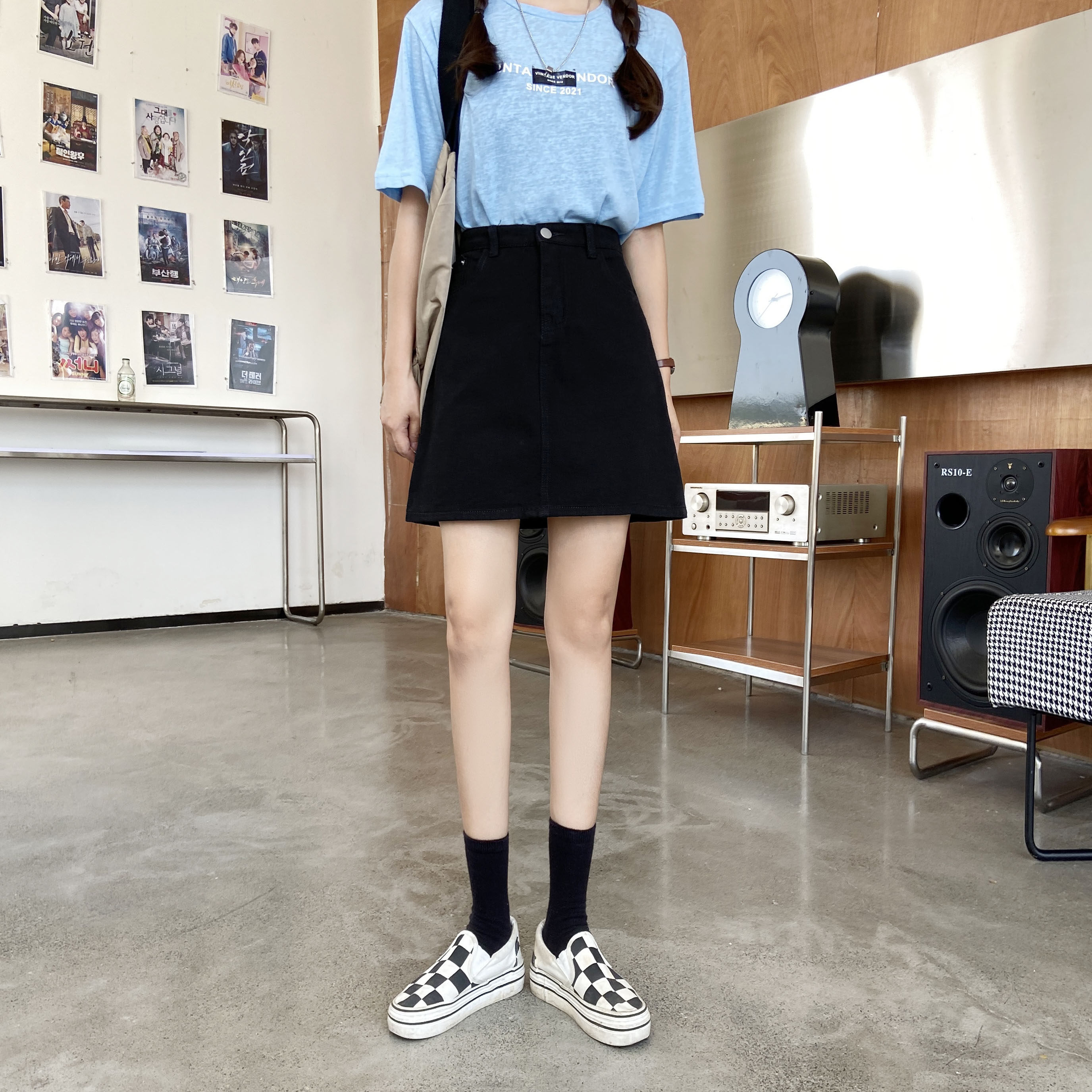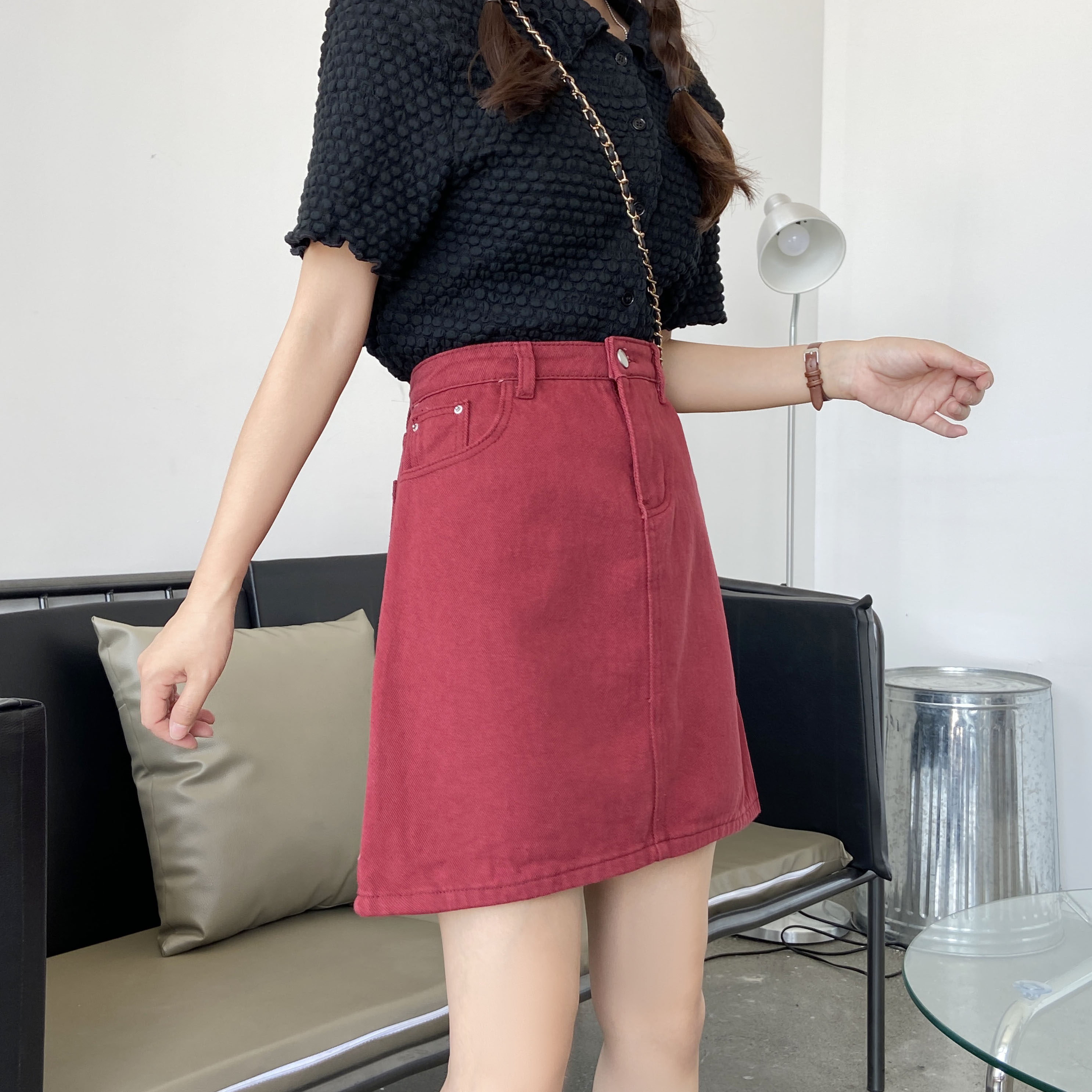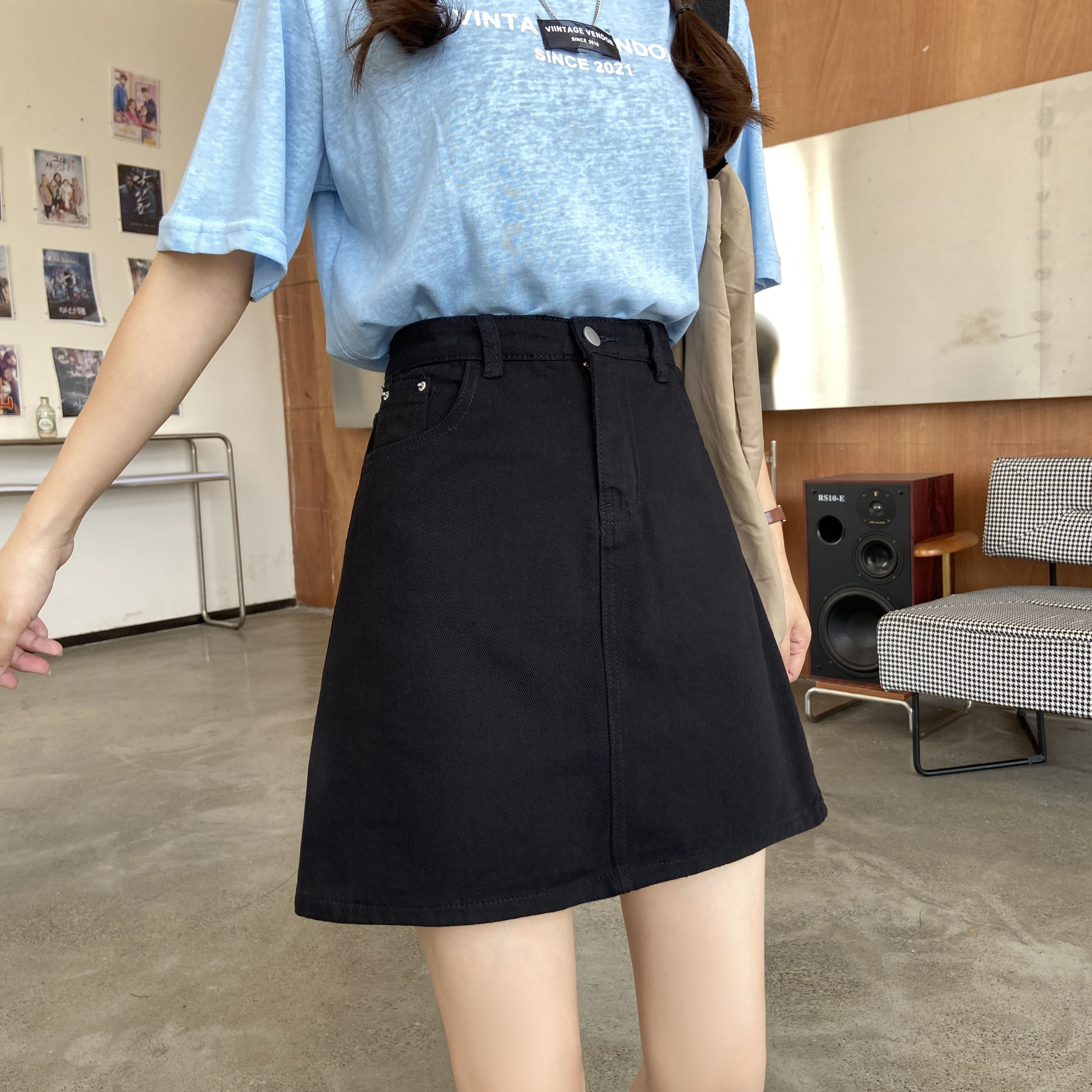Летняя черная джинсовая юбка, юбка в складку, большой размер, подходит для полных девушек, высокая талия, А-силуэт