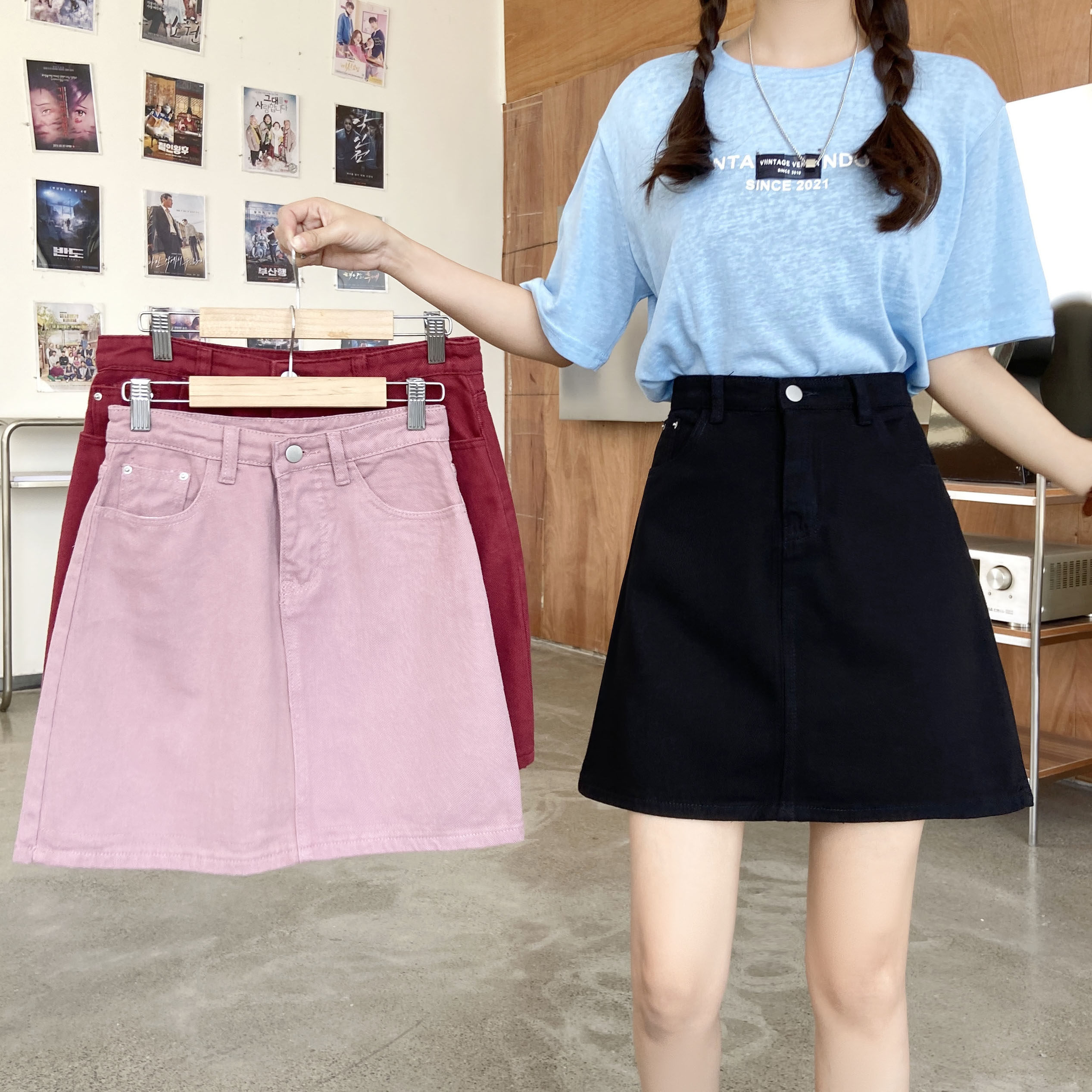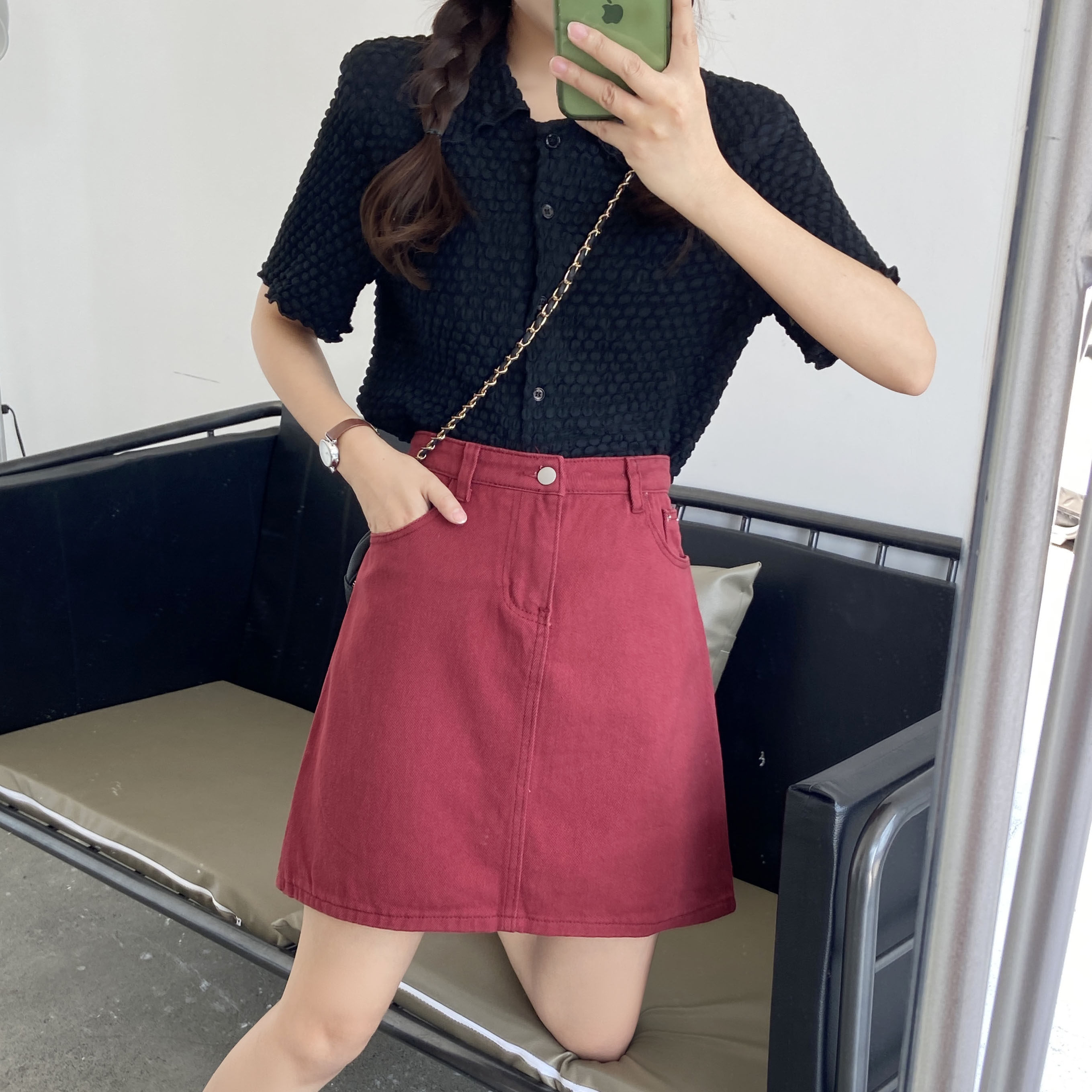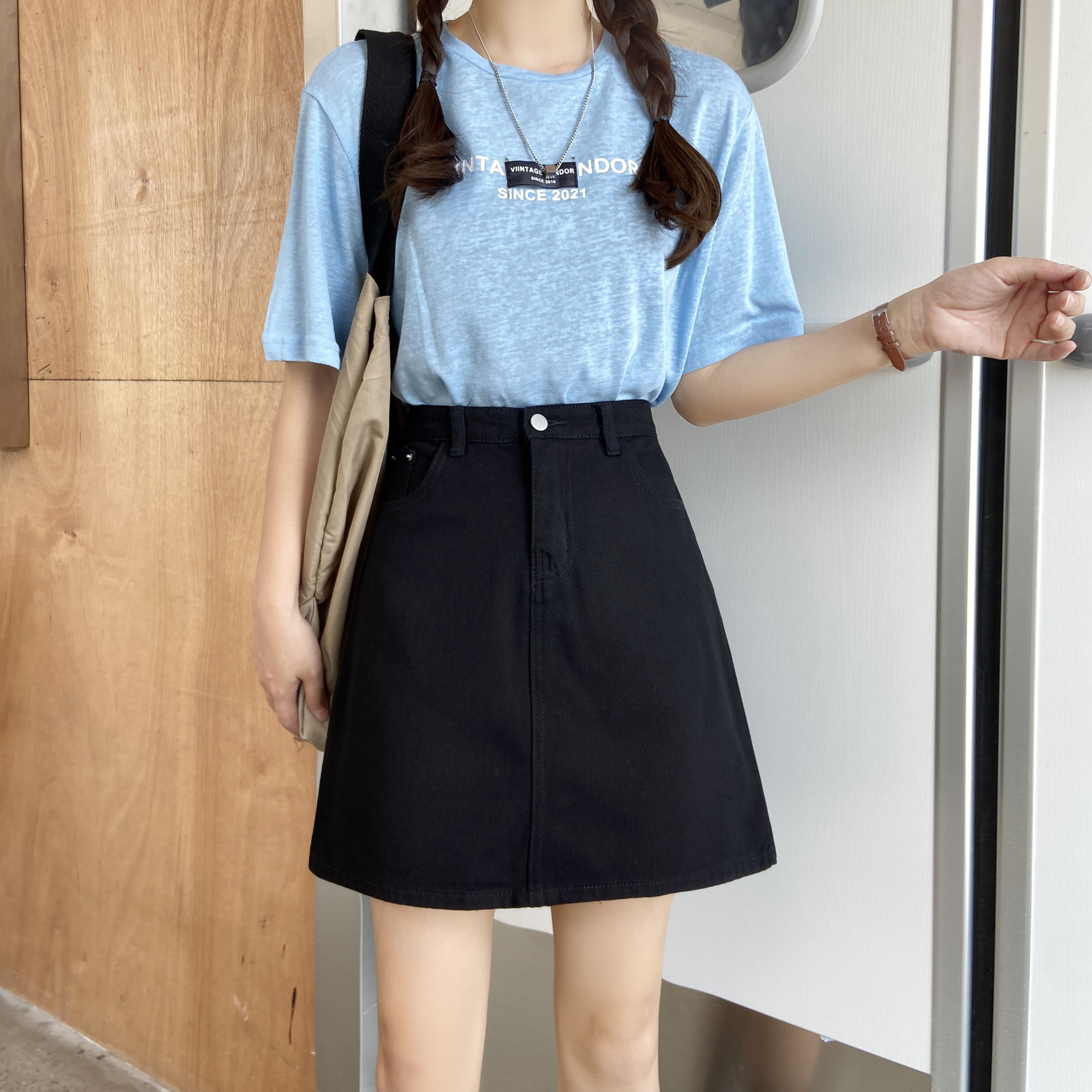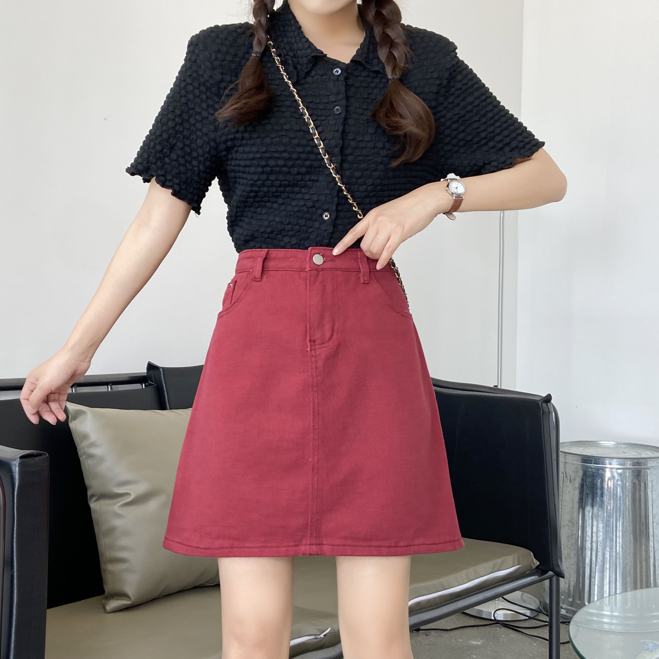 Летняя черная джинсовая юбка, юбка в складку, большой размер, подходит для полных девушек, высокая талия, А-силуэт