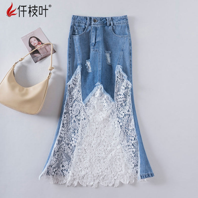 Летняя кружевная синяя цветная длинная джинсовая юбка, высокая талия, свободный крой, А-силуэт