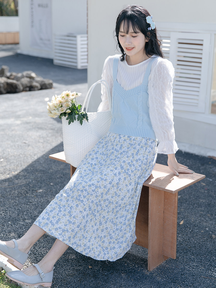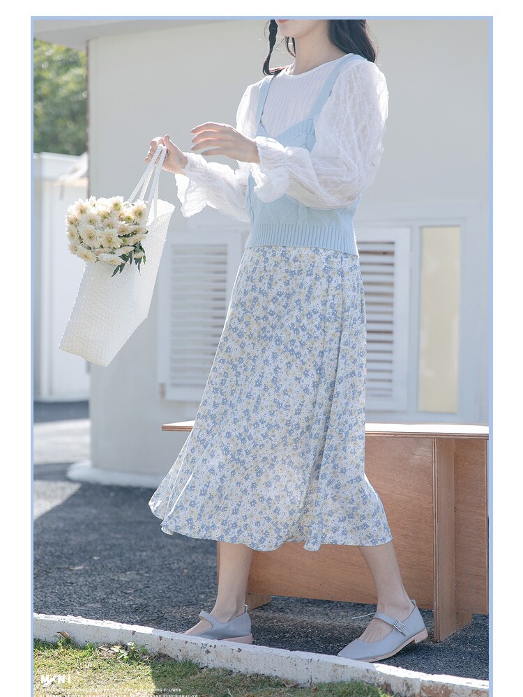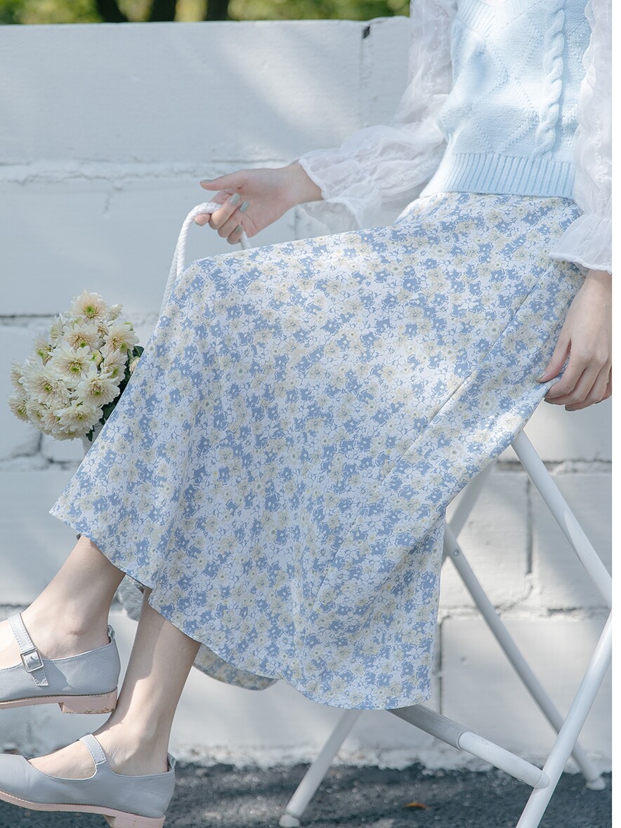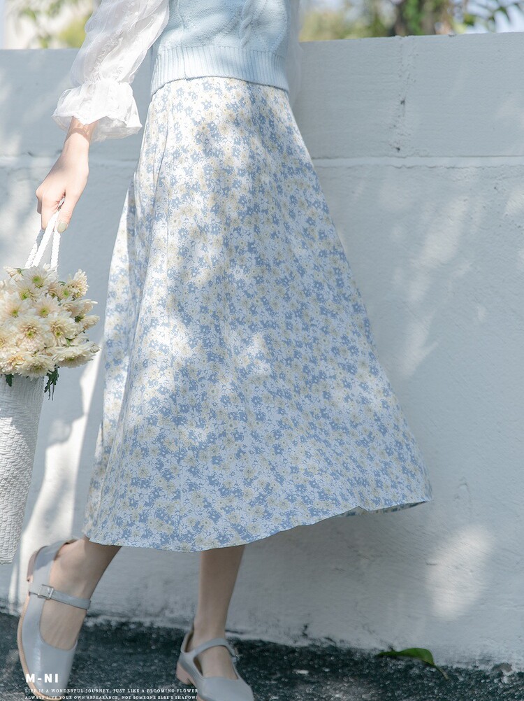 Шифоновая летняя ретро длинная юбка, французский стиль, в западном стиле, высокая талия, цветочный принт, А-силуэт