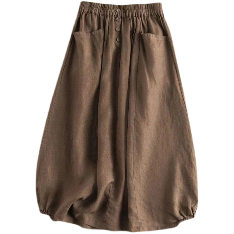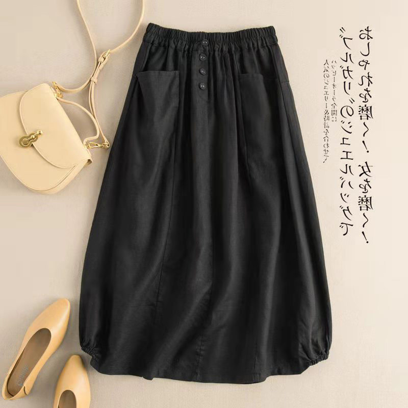 (Трансграничная торговля), японский фонарь, юбка, высокая талия, свободный крой, из хлопка и льна