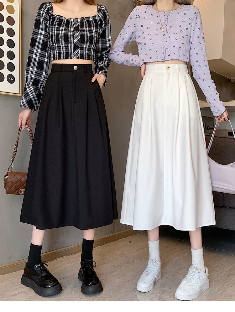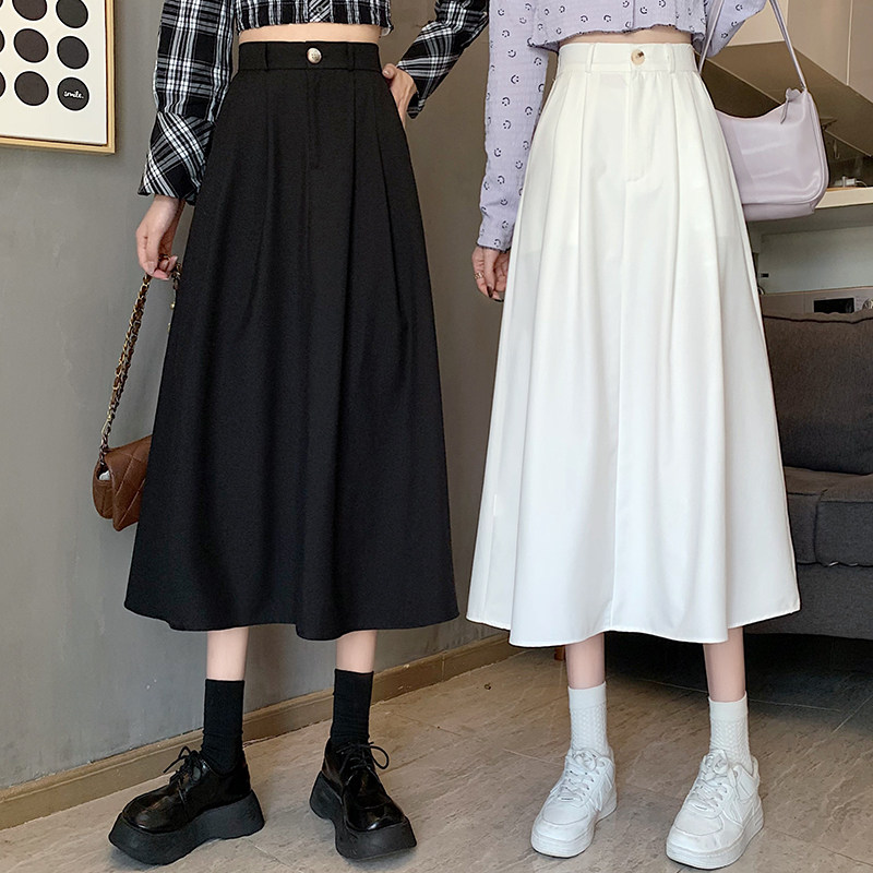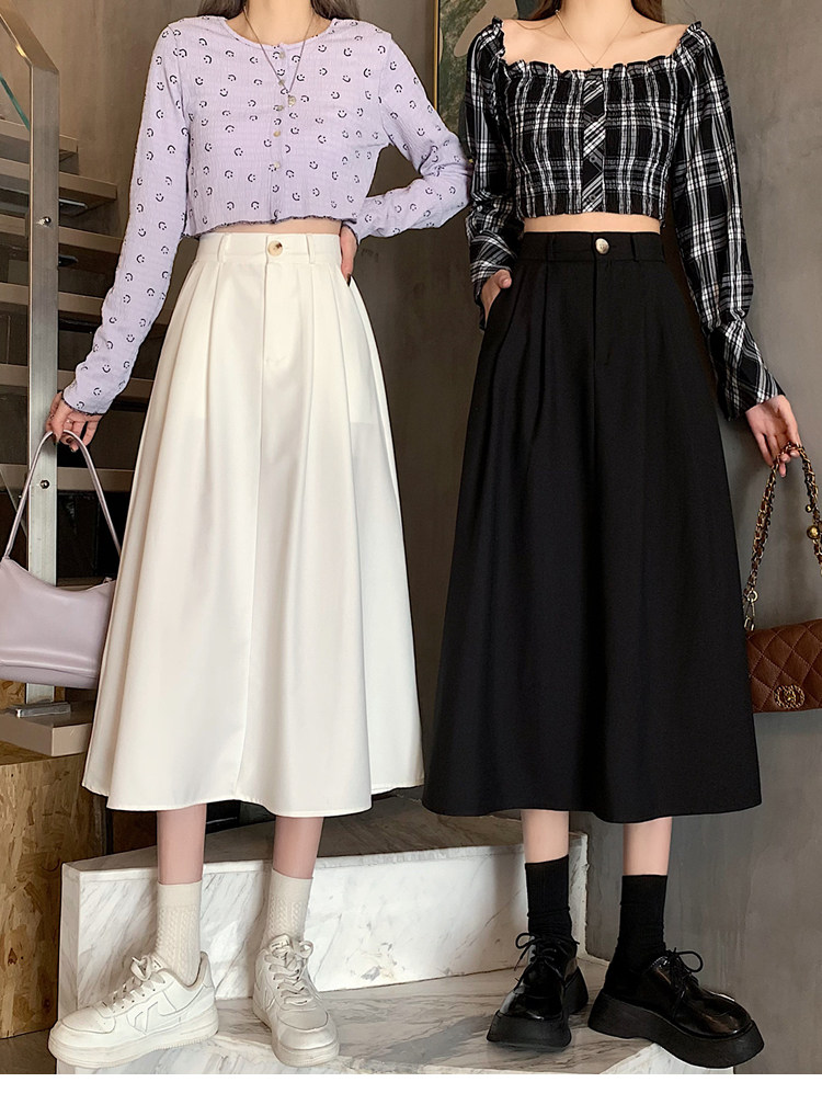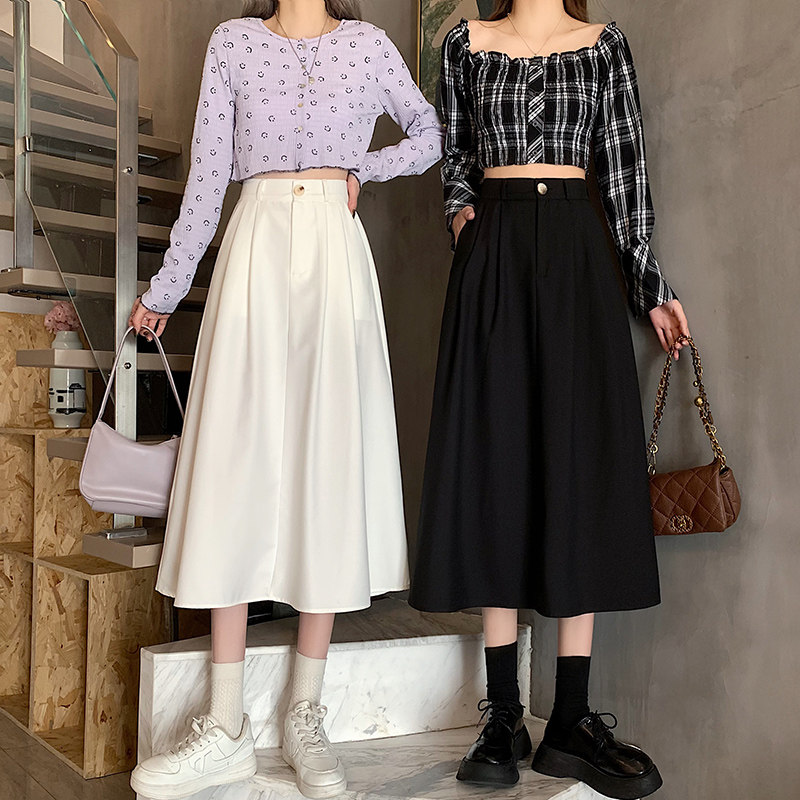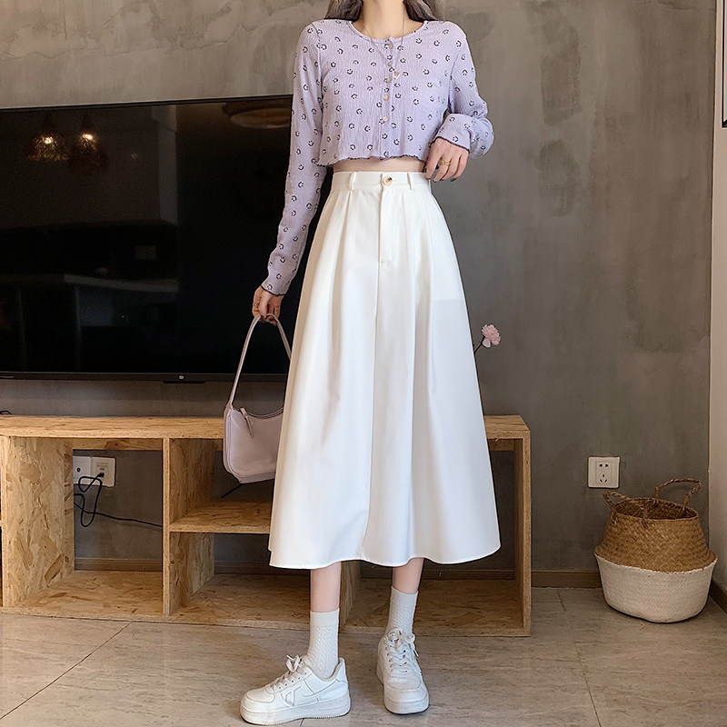 Белый костюм, осенняя приталенная юбка для отдыха, А-силуэт, подходит для подростков, эластичная талия, высокая талия