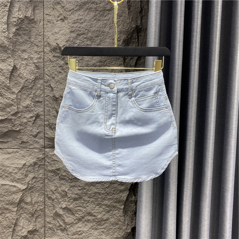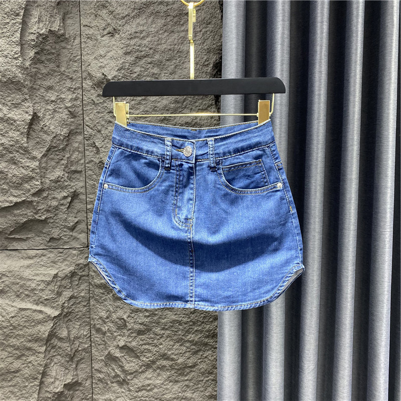 Летняя джинсовая юбка, приталенная мини-юбка, коллекция 2023, подходит для подростков, с акцентом на бедрах, А-силуэт, высокая талия