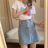 Ретро приталенная летняя джинсовая юбка, А-силуэт