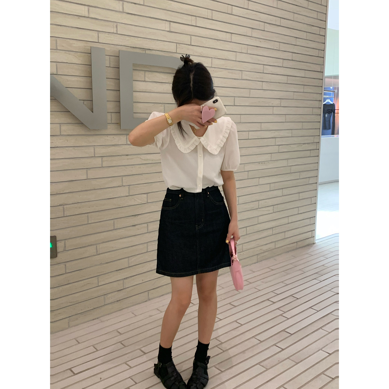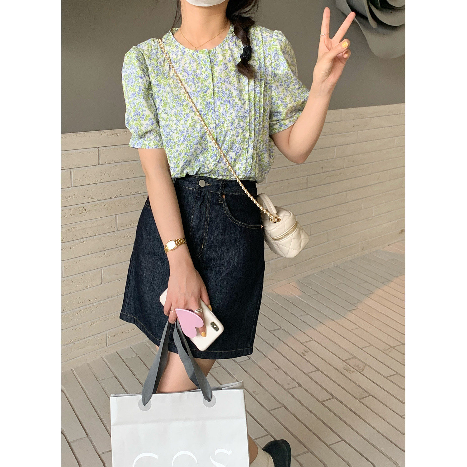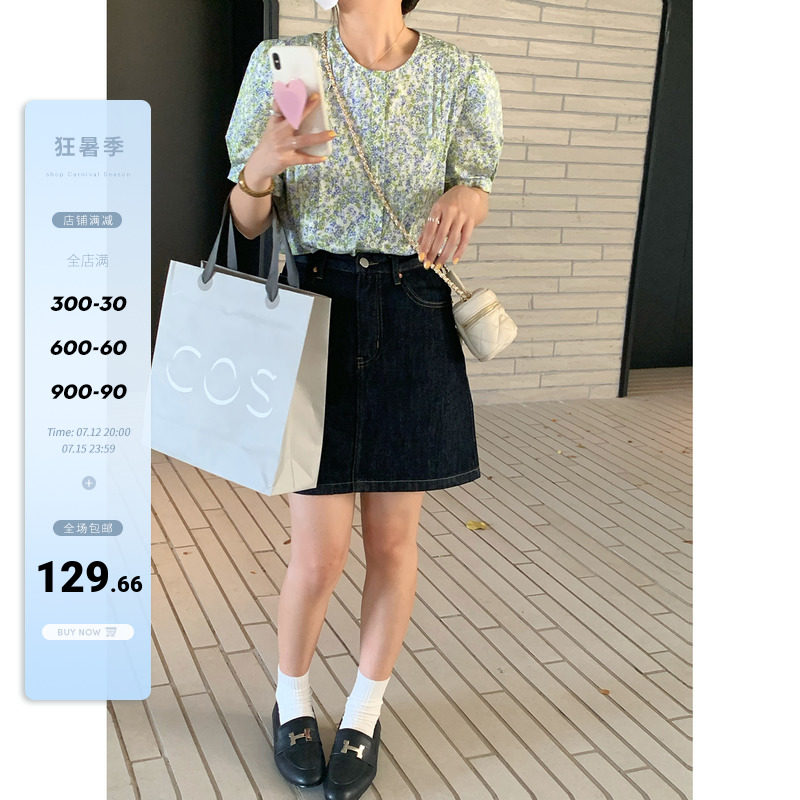 Темно-синяя летняя тонкая приталенная джинсовая юбка, высокая талия, в корейском стиле