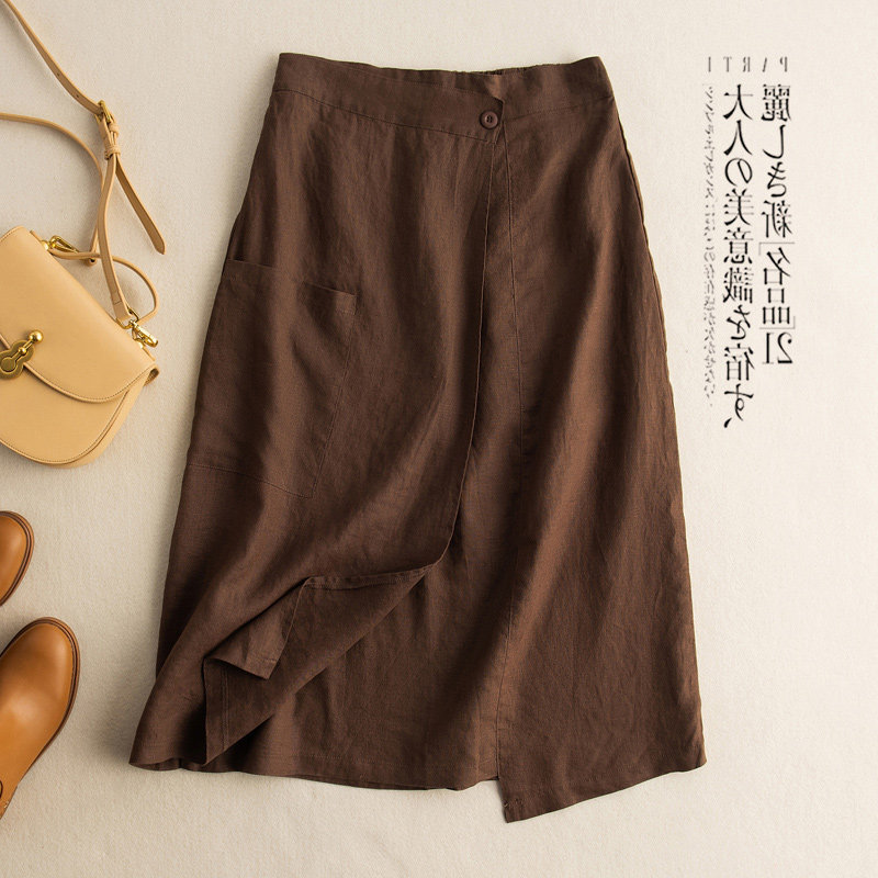 Японская юбка, из хлопка и льна, свободный крой, высокая талия, А-силуэт, с акцентом на бедрах