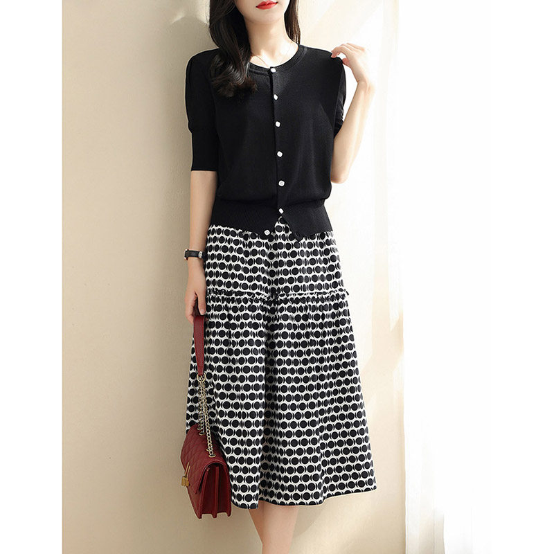 Модная шифоновая юбка с круглым воротником для отдыха, трикотажный кардиган, в корейском стиле