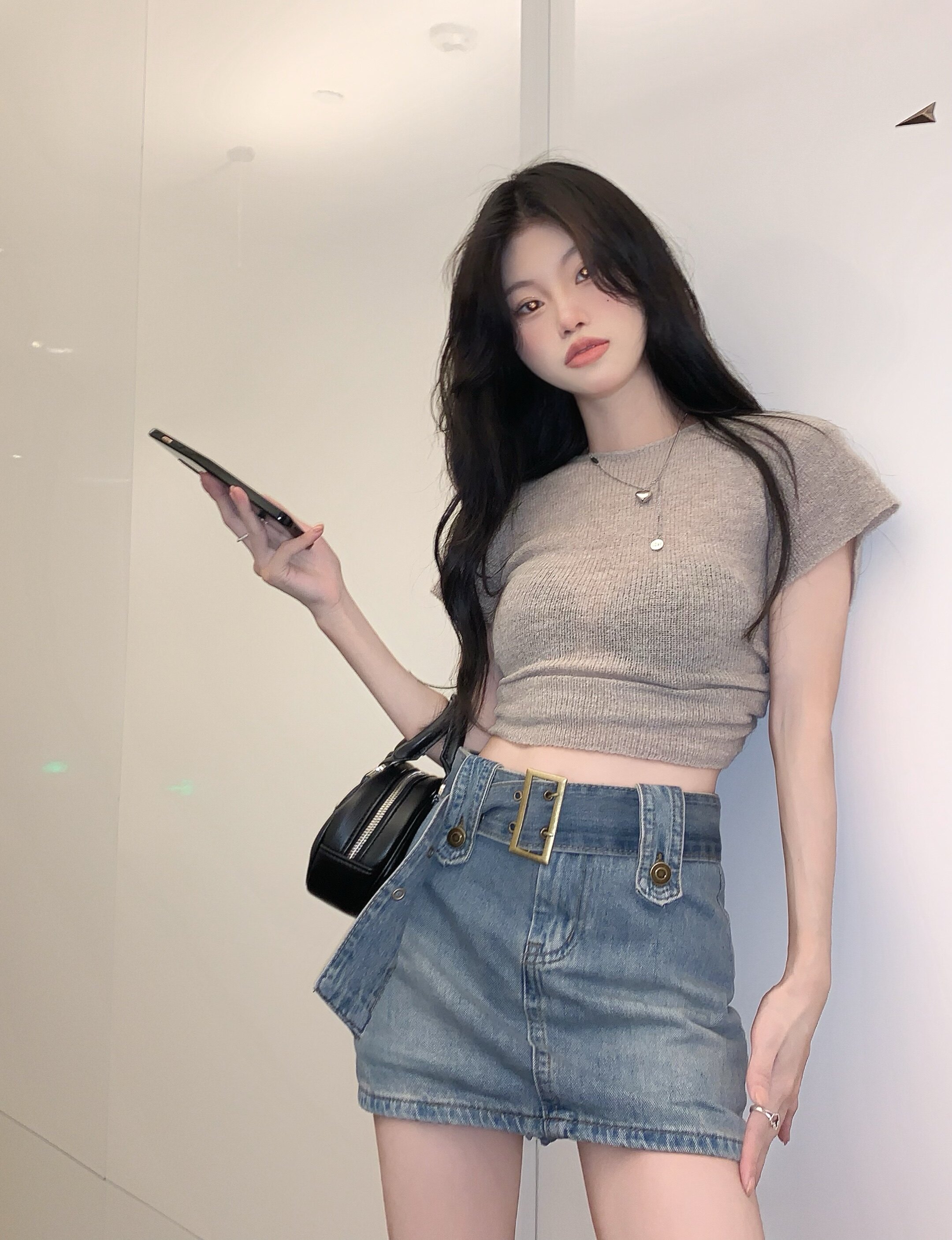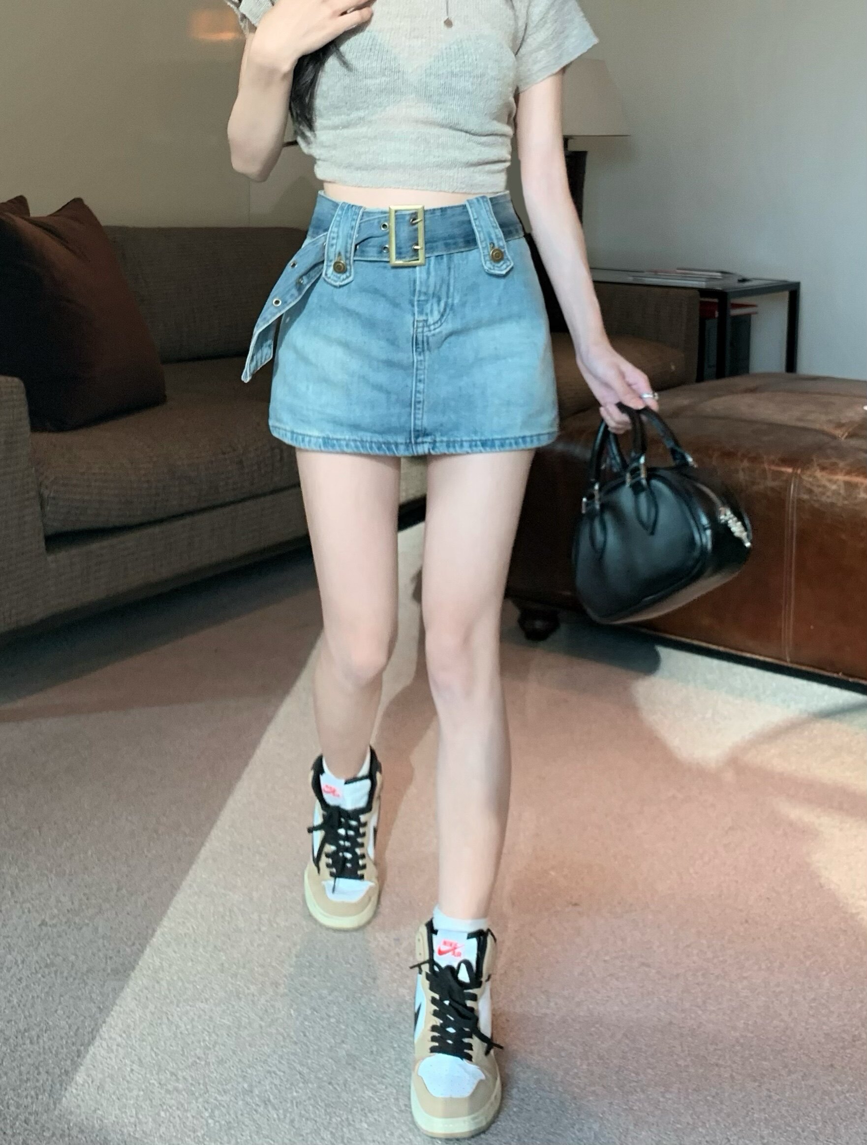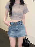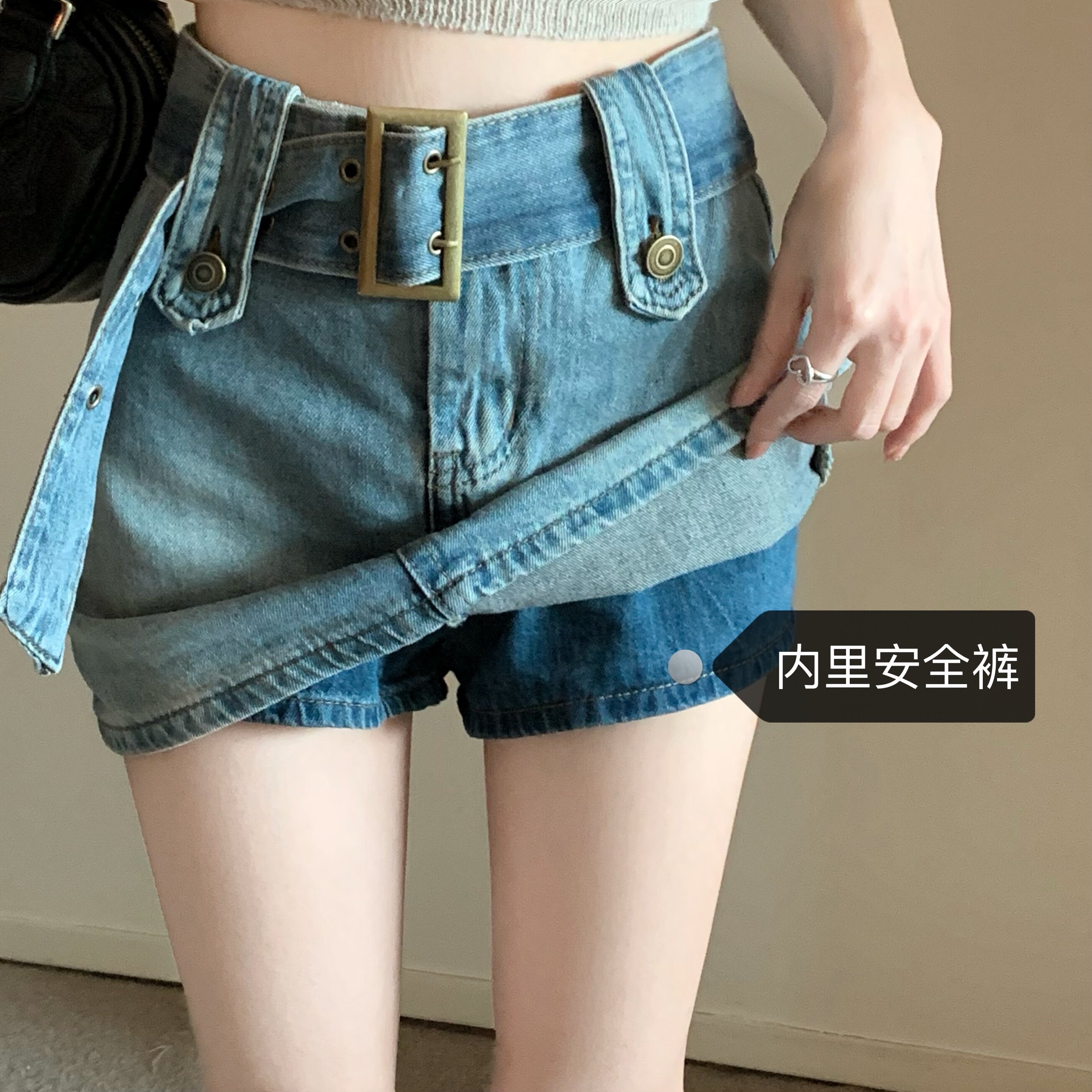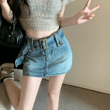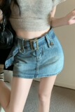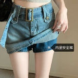 Ретро джинсовая летняя юбка, приталенный ростомер, шорты, ремень, с акцентом на бедрах, высокая талия