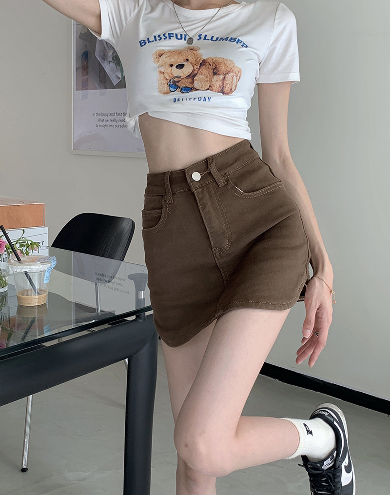 Ретро эластичная летняя джинсовая юбка, штаны, высокая талия, с акцентом на бедрах