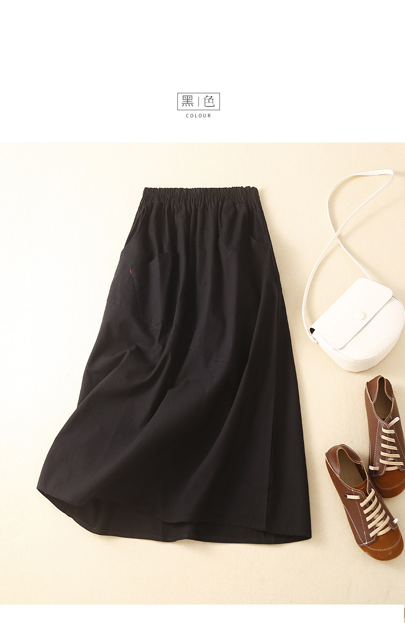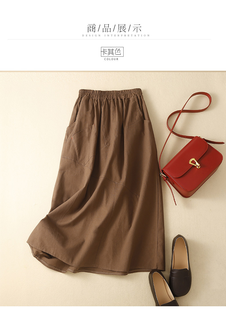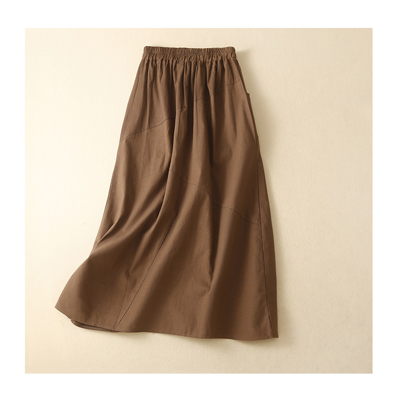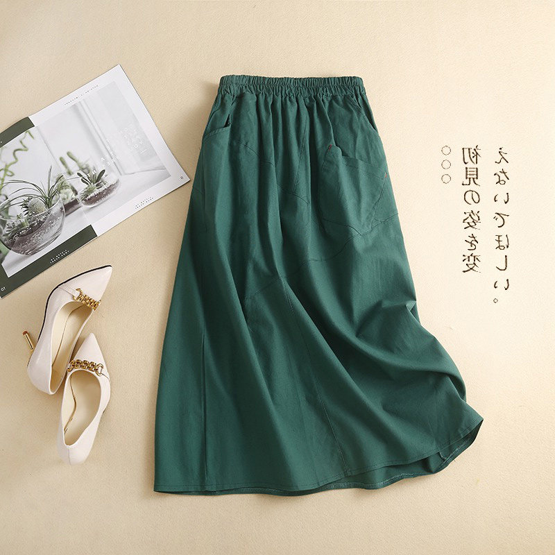 Брендовая ретро юбка для отдыха, высокая талия, из хлопка и льна, А-силуэт