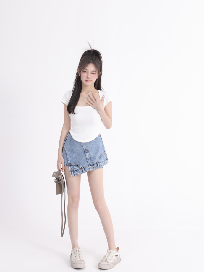 Летняя джинсовая юбка, шорты, высокая талия