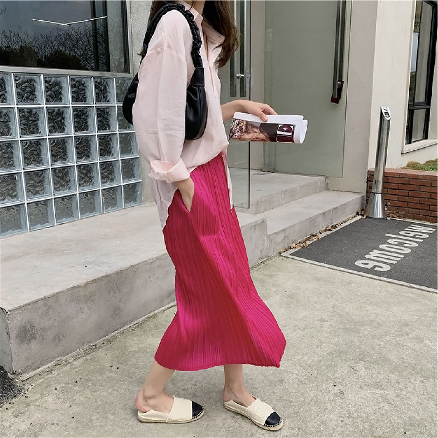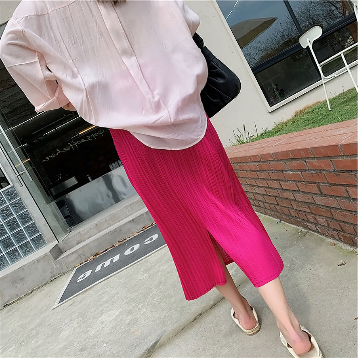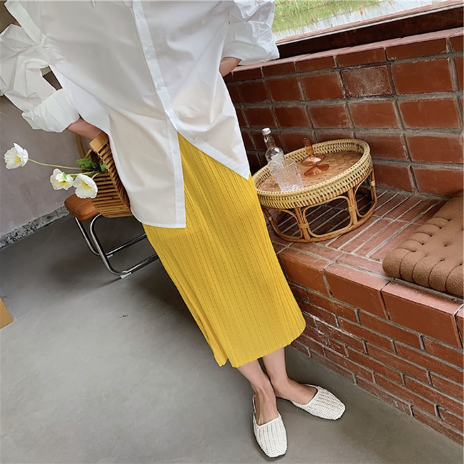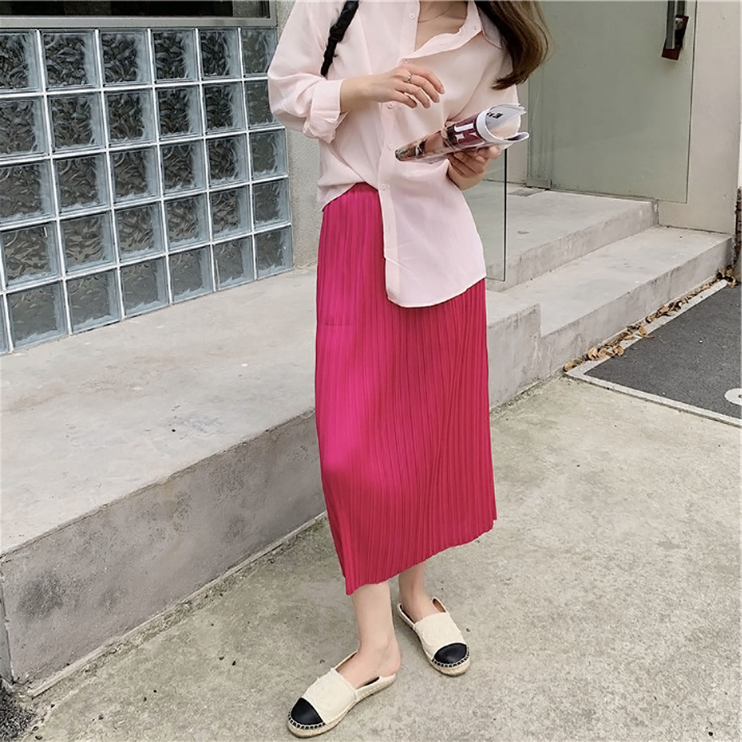 Красная летняя юбка в складку, высокая талия