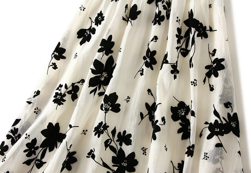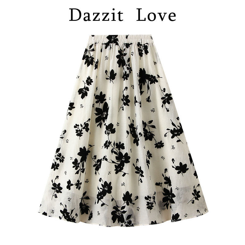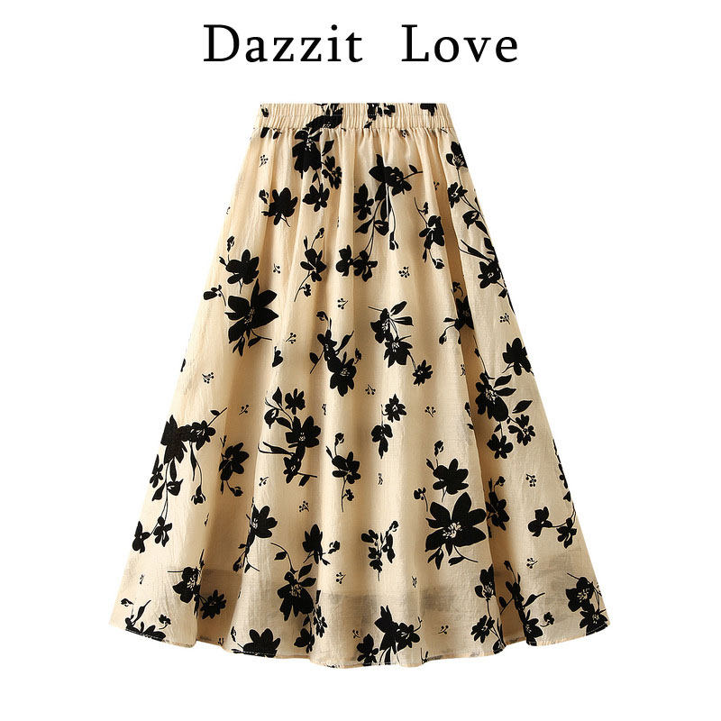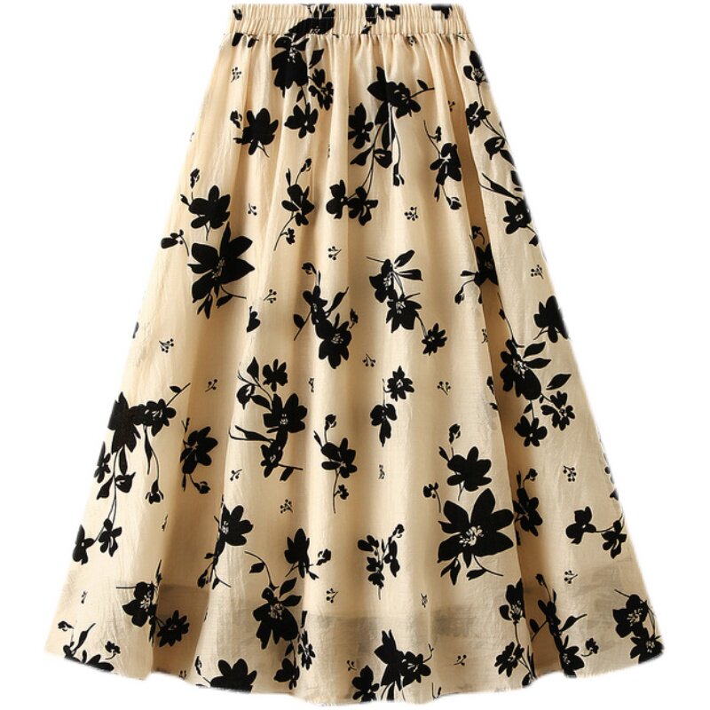 Летний длинный кленовый лист, приталенная юбка, цветочный принт, А-силуэт, длина миди, городской стиль, высокая талия