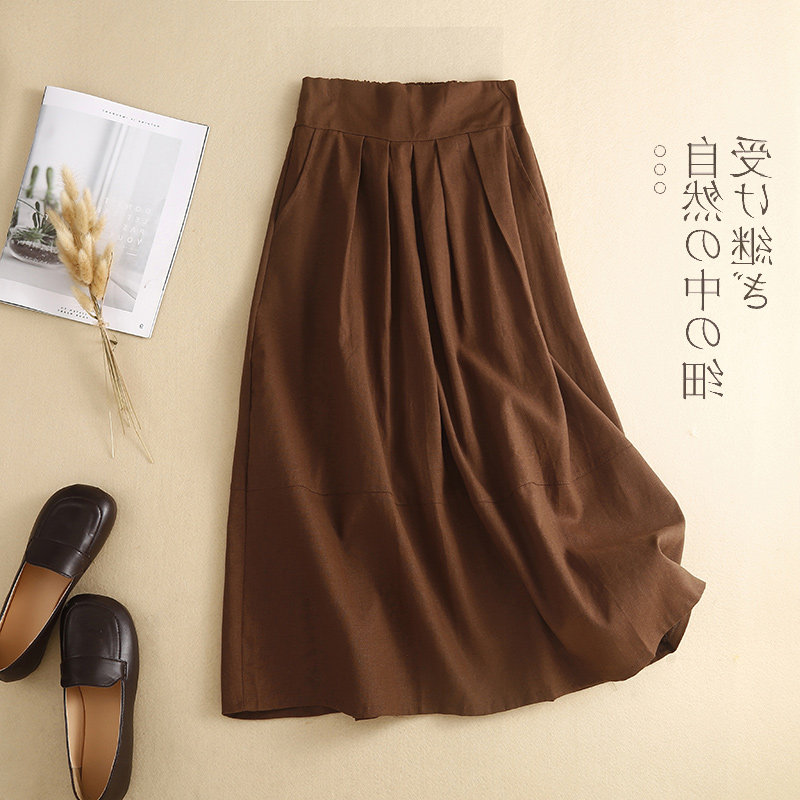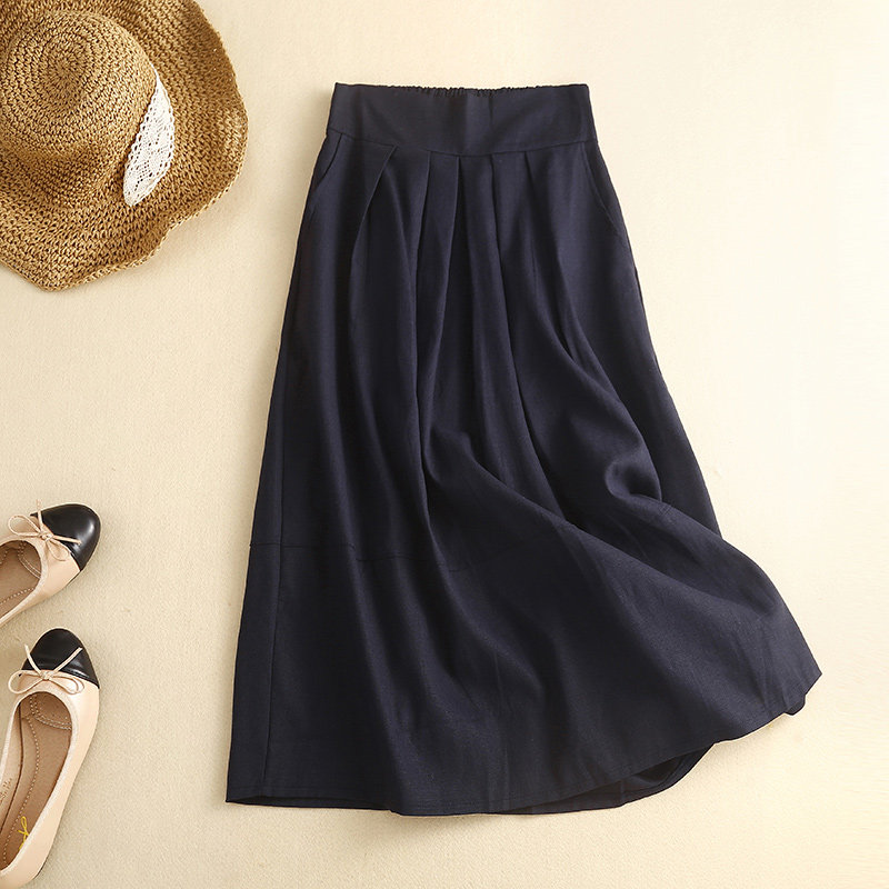 Брендовая ретро юбка, из хлопка и льна, А-силуэт