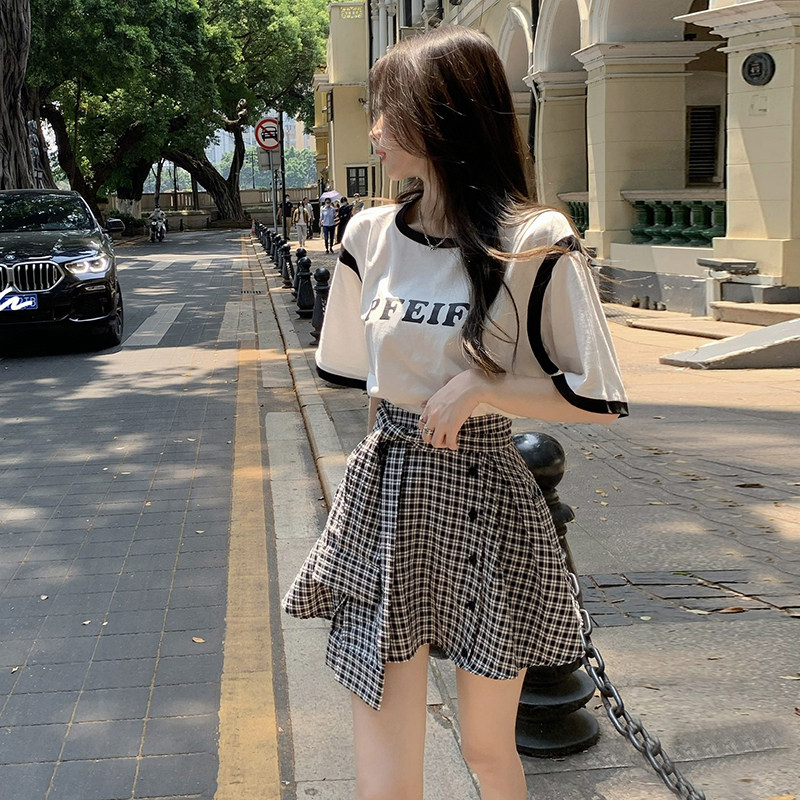 Клетчатая юбка, летний ремень, летняя мини-юбка, высокая талия, А-силуэт