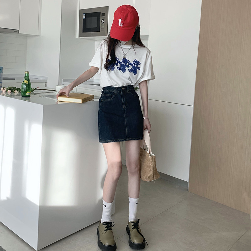 Синяя летняя брендовая джинсовая юбка, мини-юбка, в корейском стиле, с акцентом на бедрах