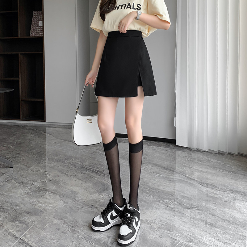 Черная мини-юбка, юбка, штаны, летняя одежда, защитное белье, костюм, А-силуэт, с акцентом на бедрах