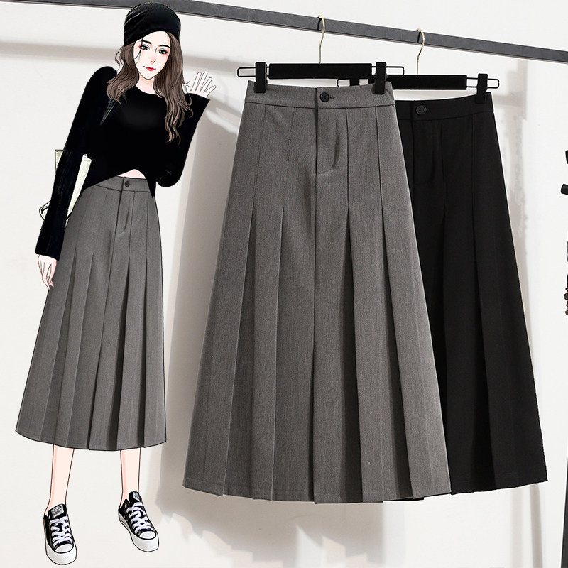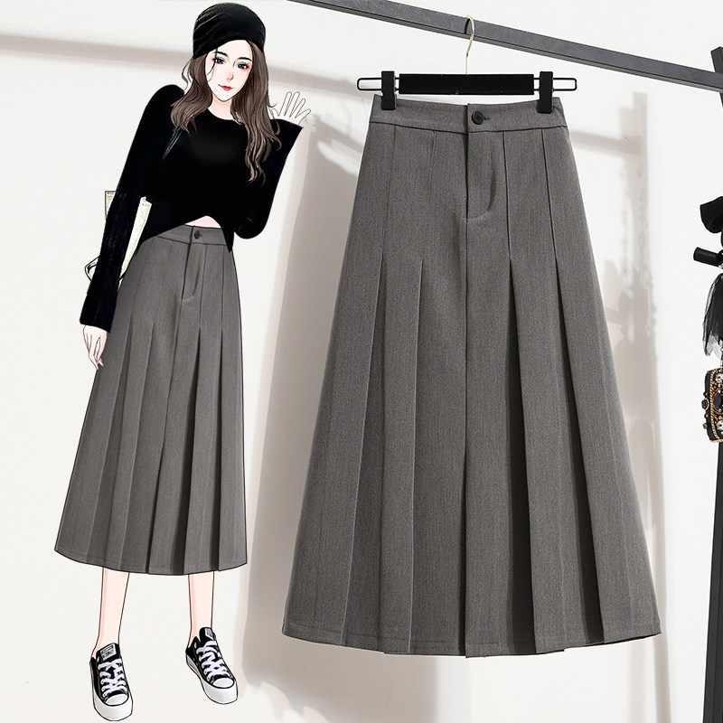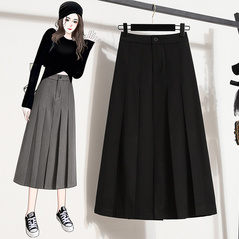 Костюм, летняя длинная юбка в складку, большой размер, высокая талия, плиссированная юбка, средней длины, А-силуэт