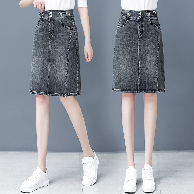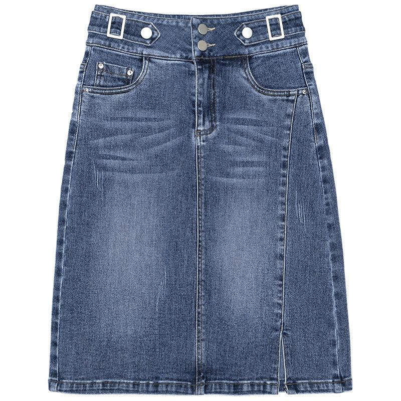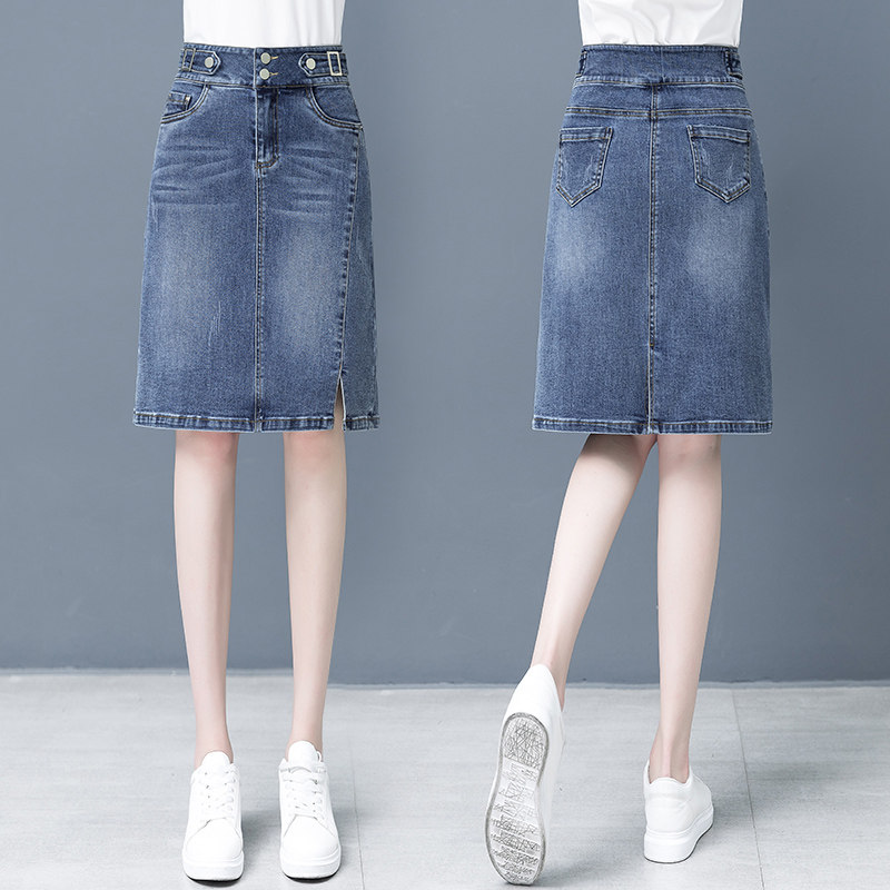 Летняя длинная приталенная тонкая джинсовая юбка, средней длины, А-силуэт, с акцентом на бедрах