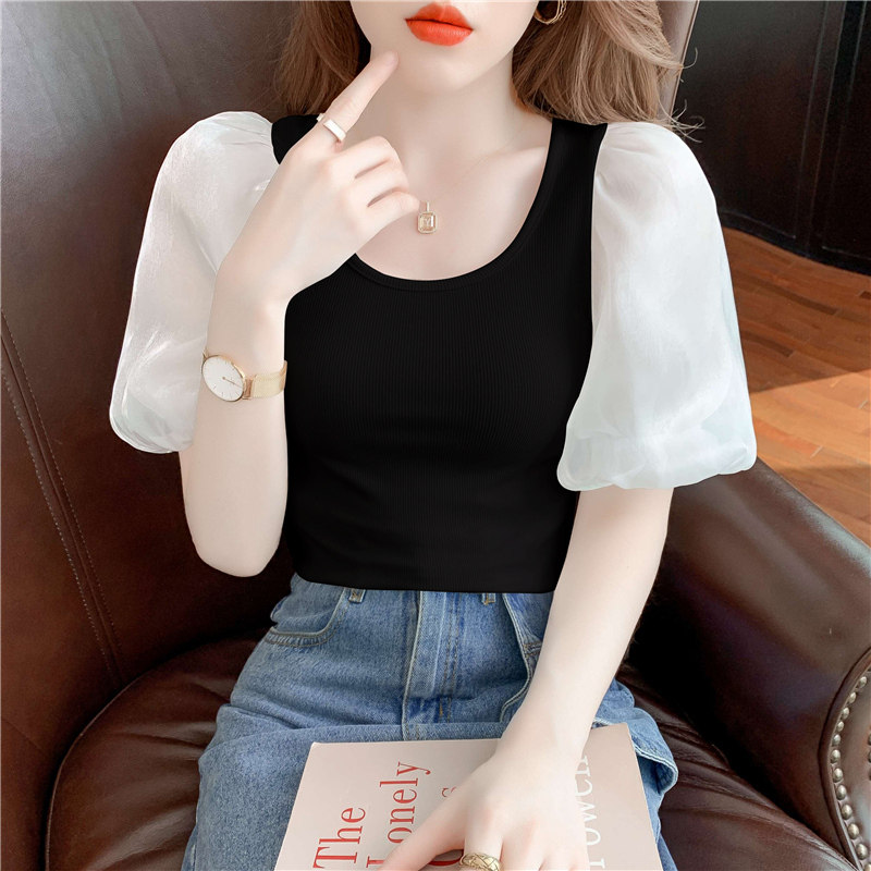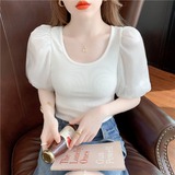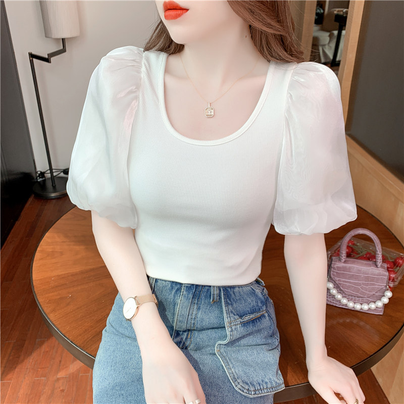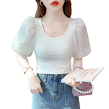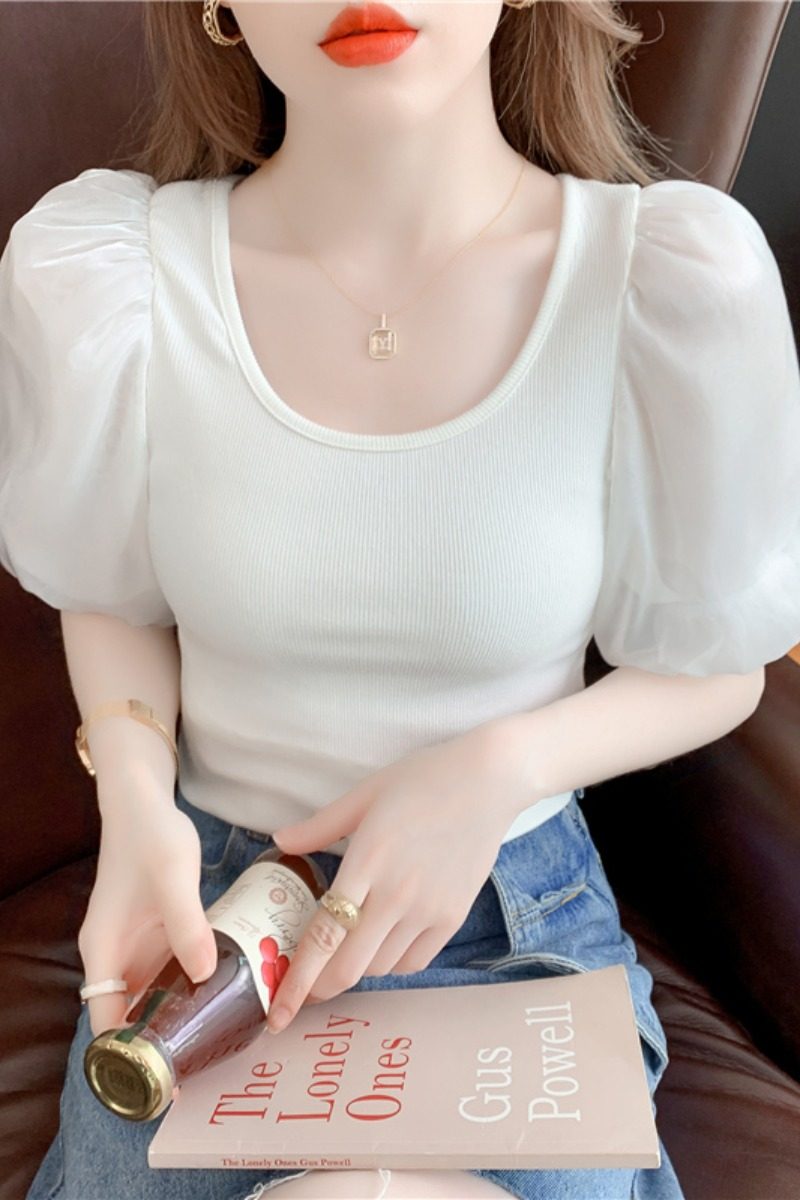 Белая футболка, элитная летняя одежда, коллекция 2023, в западном стиле, рукава фонарики