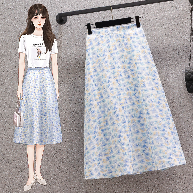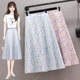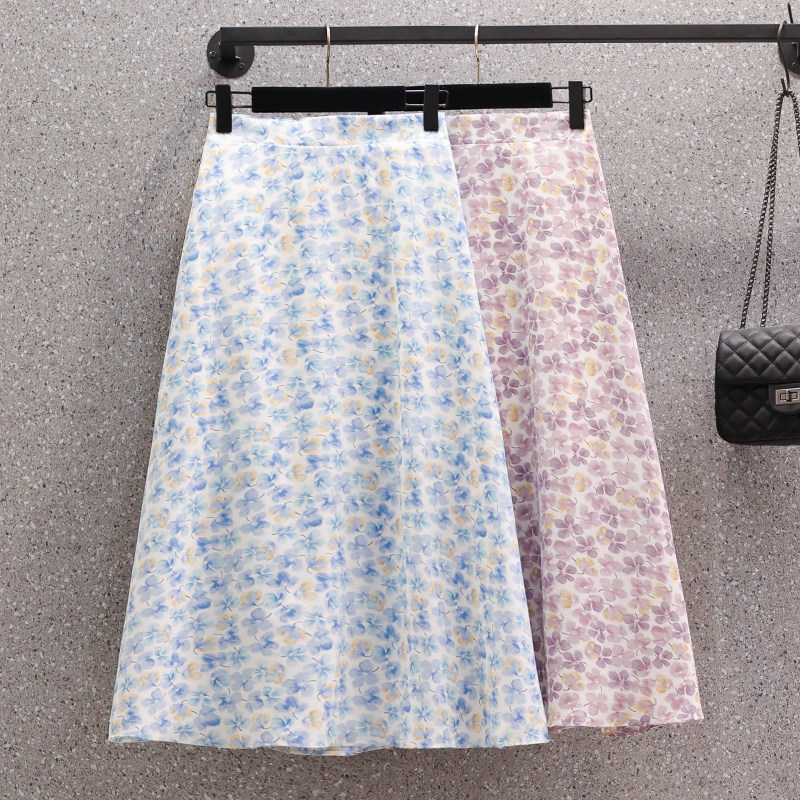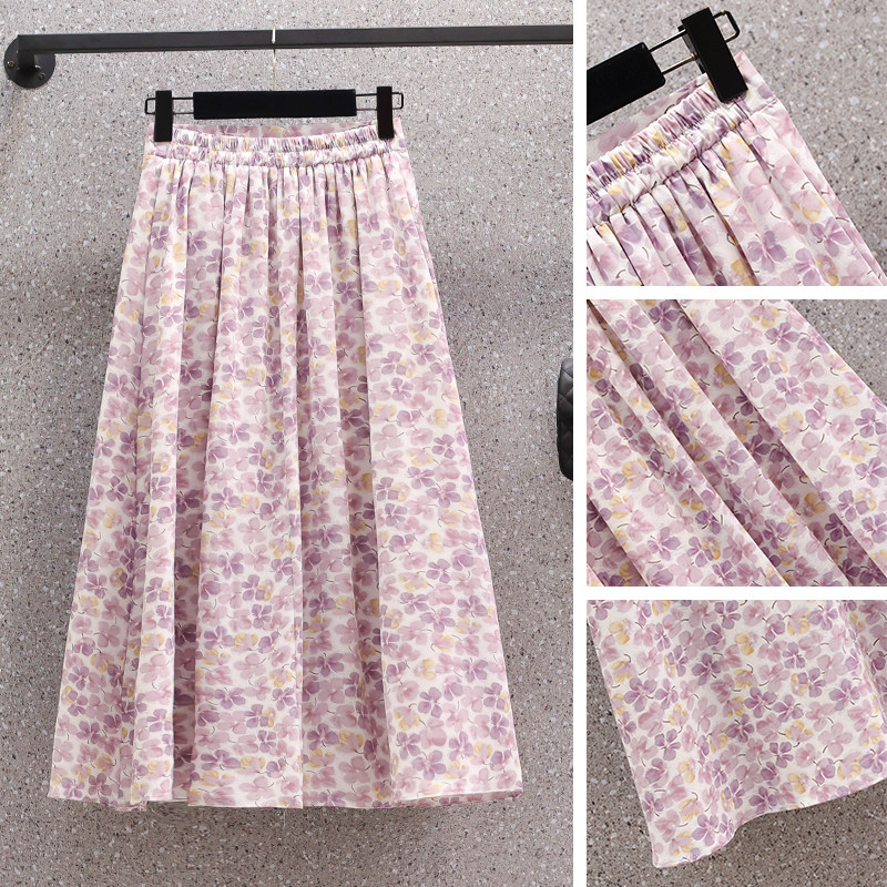 Летняя длинная юбка, большой размер, высокая талия, средней длины, цветочный принт