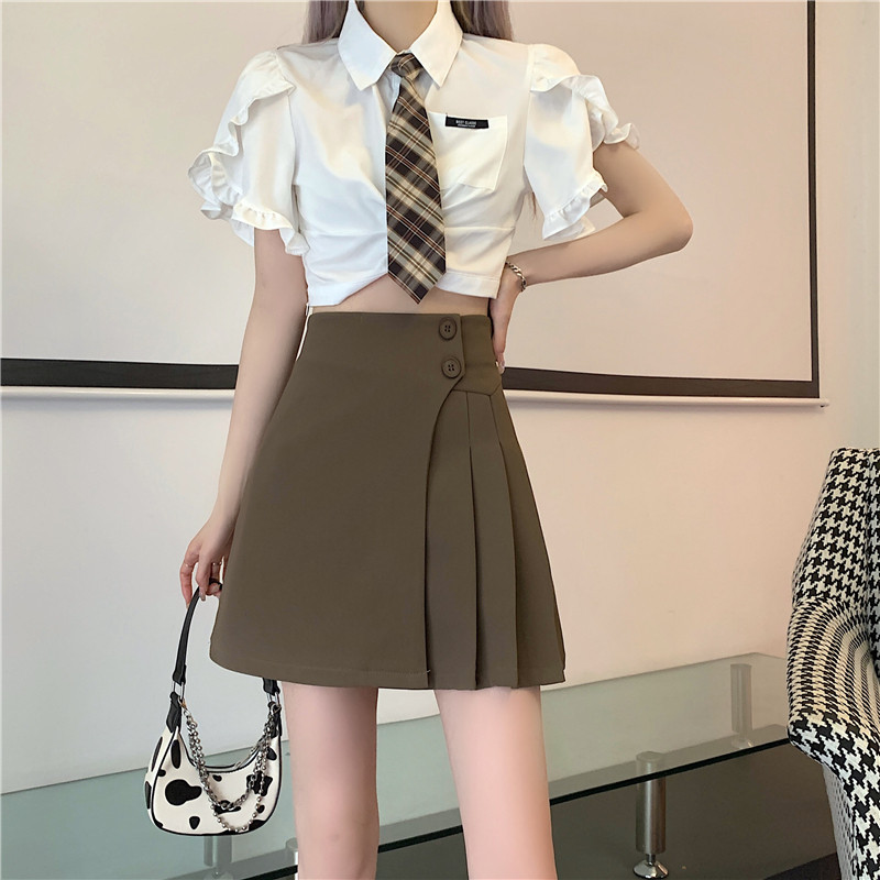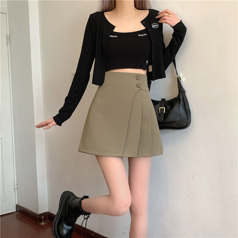Летняя хаки сексуальная мини-юбка, юбка в складку, высокая талия, А-силуэт