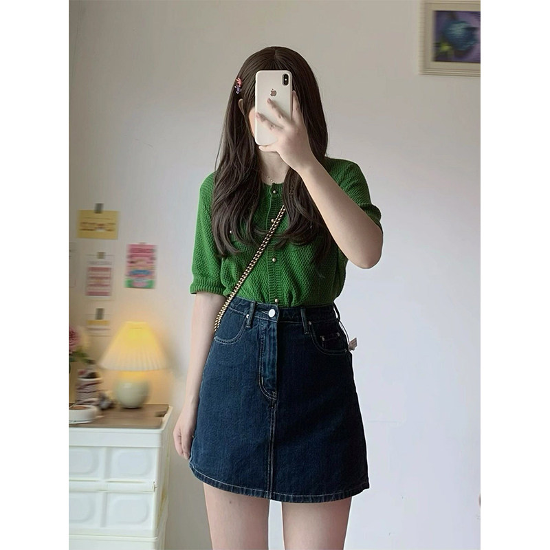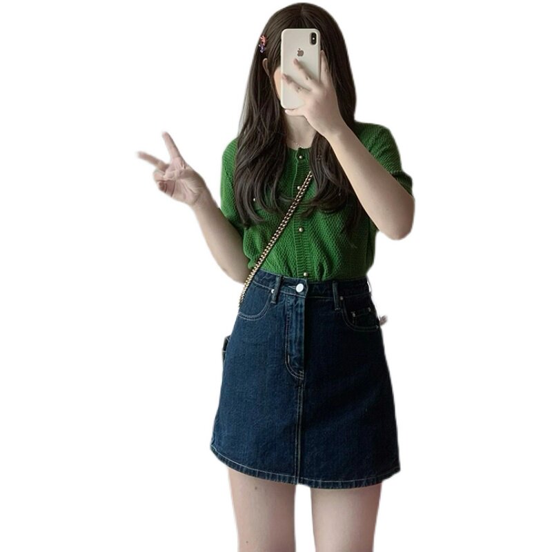 Демисезонная джинсовая юбка, мини-юбка, высокая талия, большой размер, подходит для полных девушек, свободный крой, А-силуэт