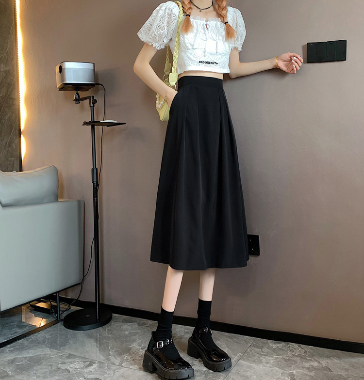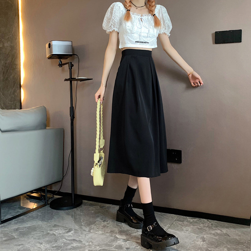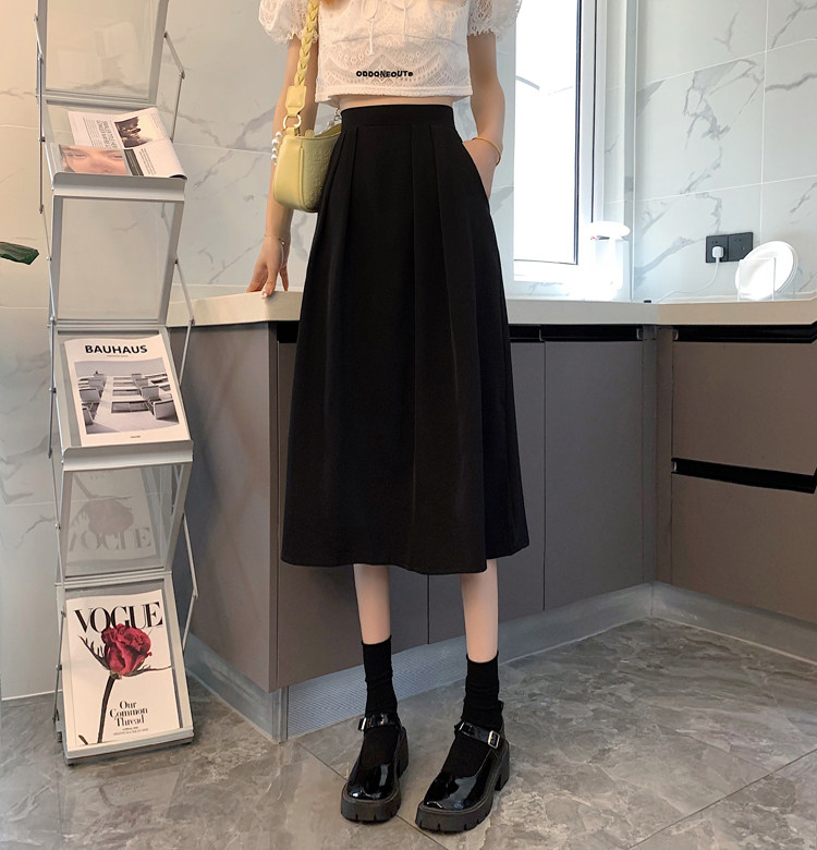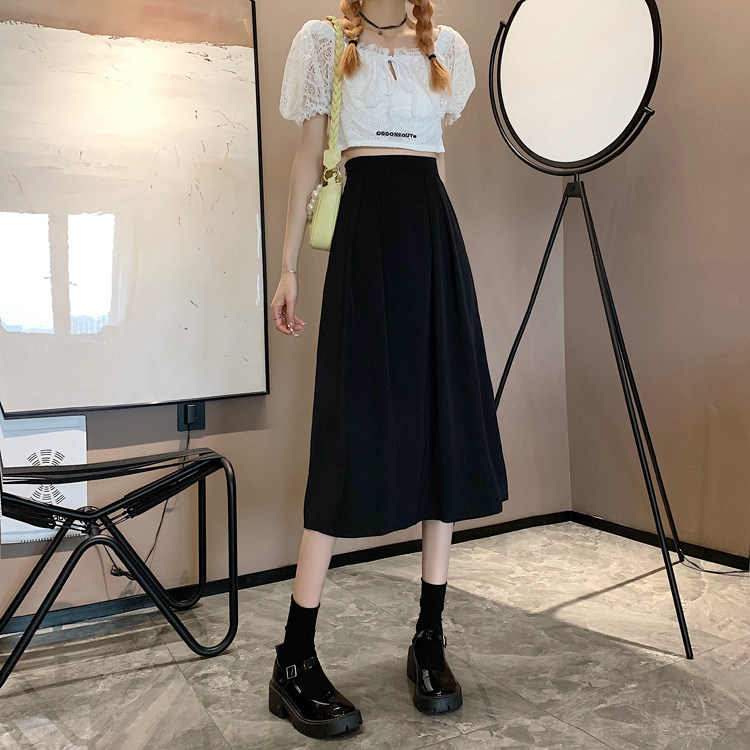 Длинная летняя черная юбка в складку, подходит для подростков, средней длины, высокая талия, А-силуэт