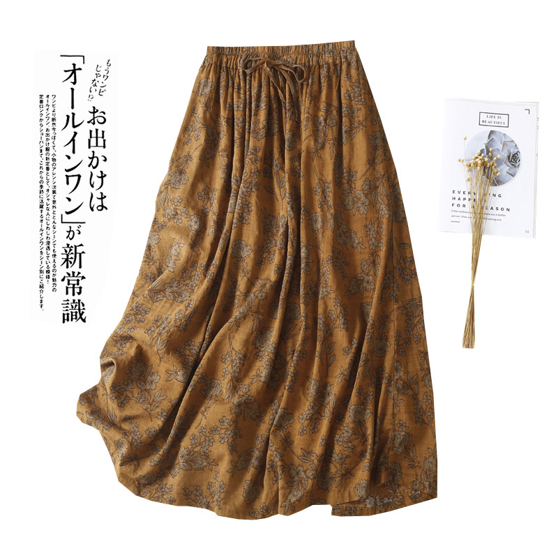 Ретро длинная юбка для отдыха, из хлопка и льна