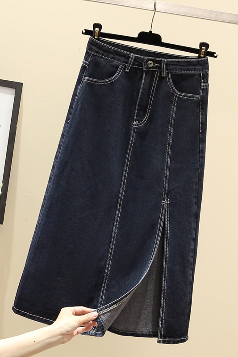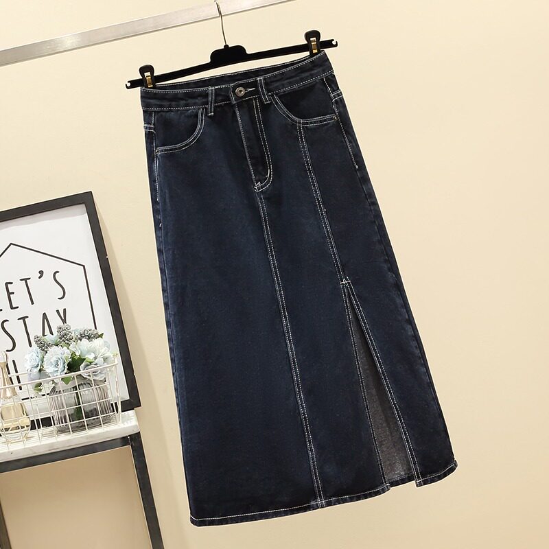 Приталенная летняя длинная юбка, джинсовая юбка, большой размер, высокая талия, средней длины, А-силуэт