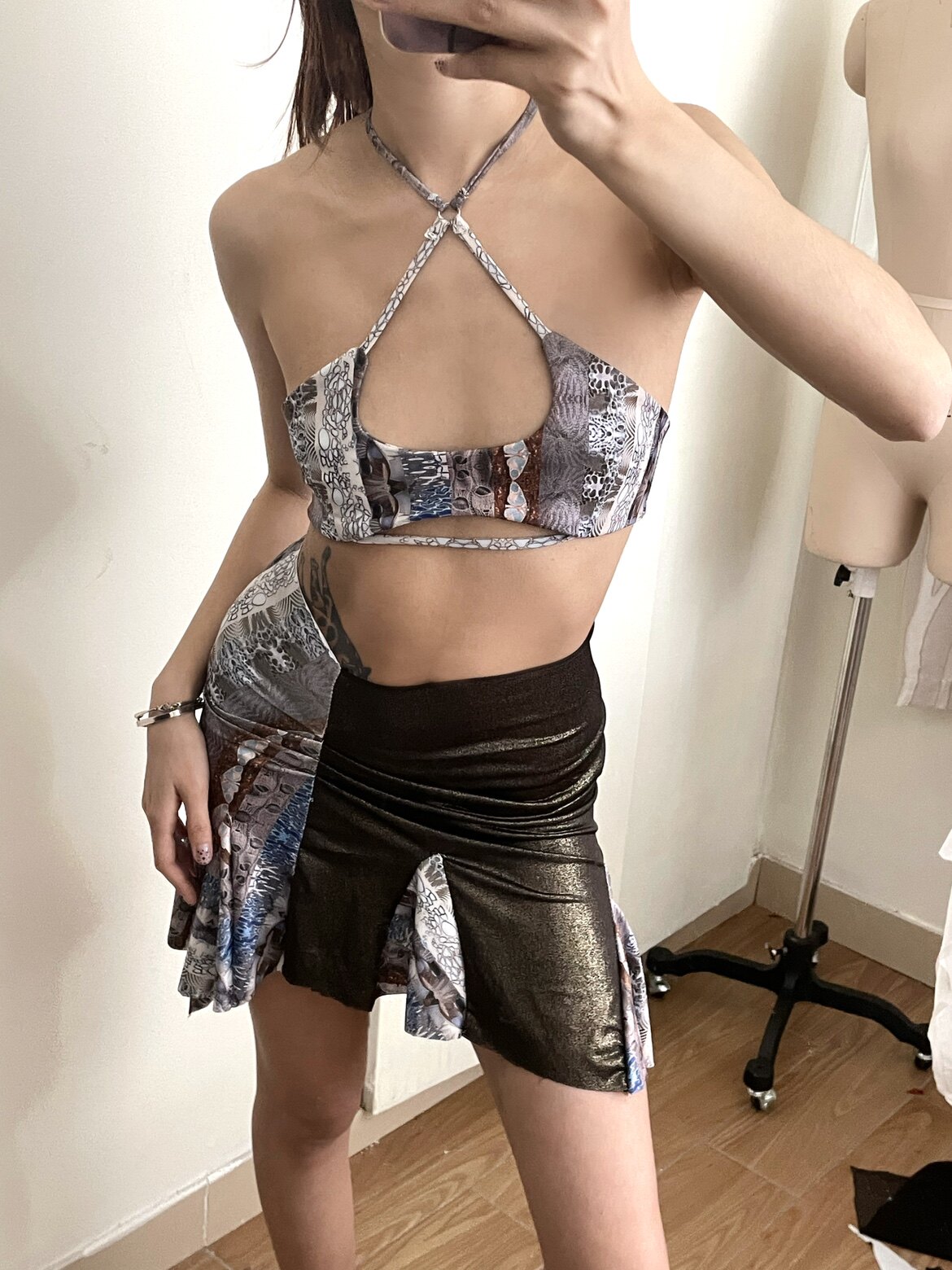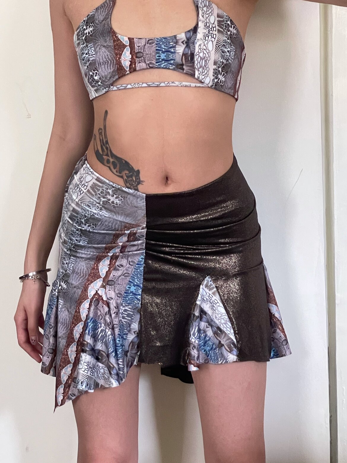 Трикотажная асимметричная дизайнерская мини-юбка, леггинсы, (в наличии на складе), тренд сезона