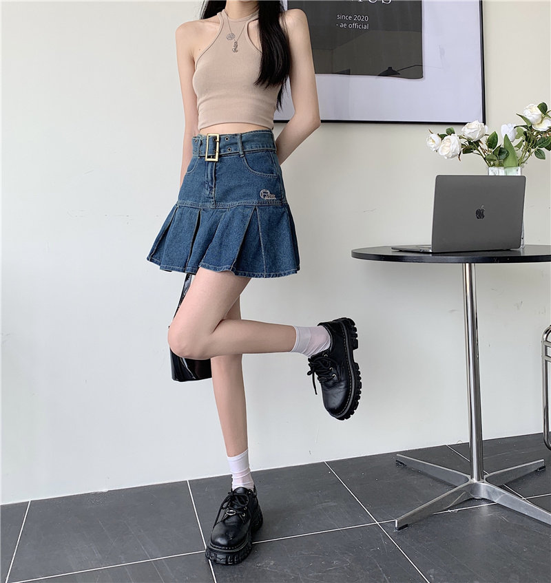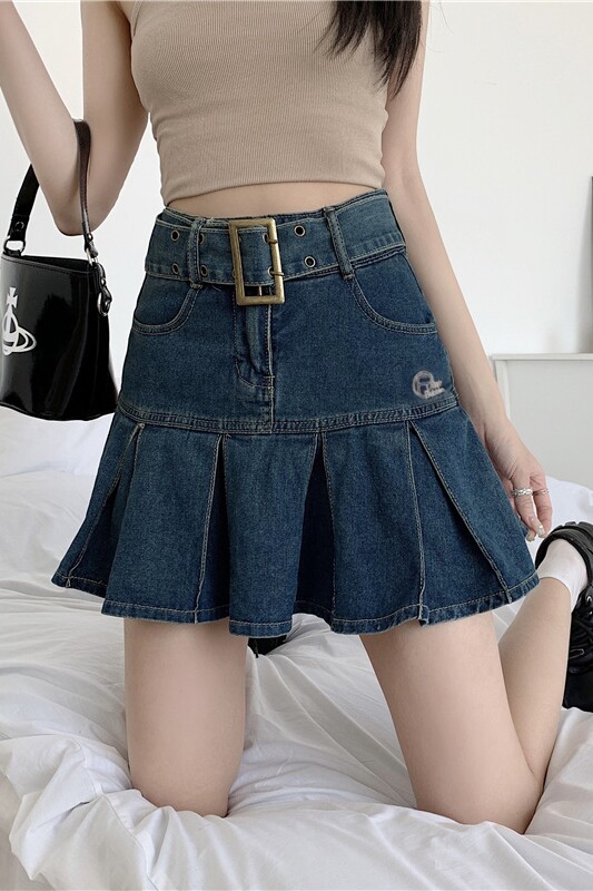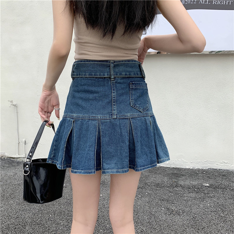 Дизайнерская ретро джинсовая юбка, мини-юбка, юбка в складку, тренд сезона, большой размер, с акцентом на бедрах, А-силуэт