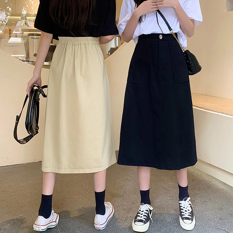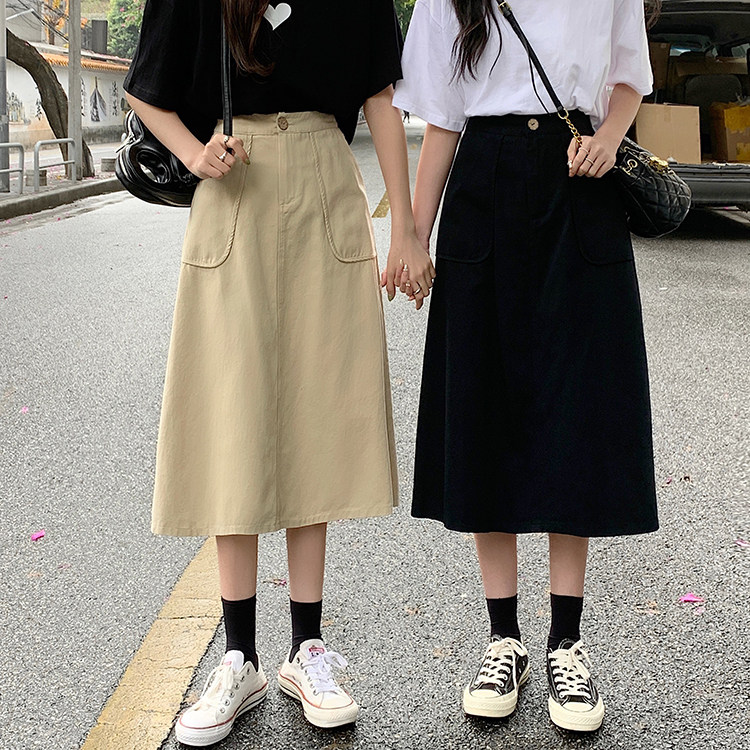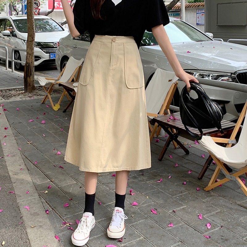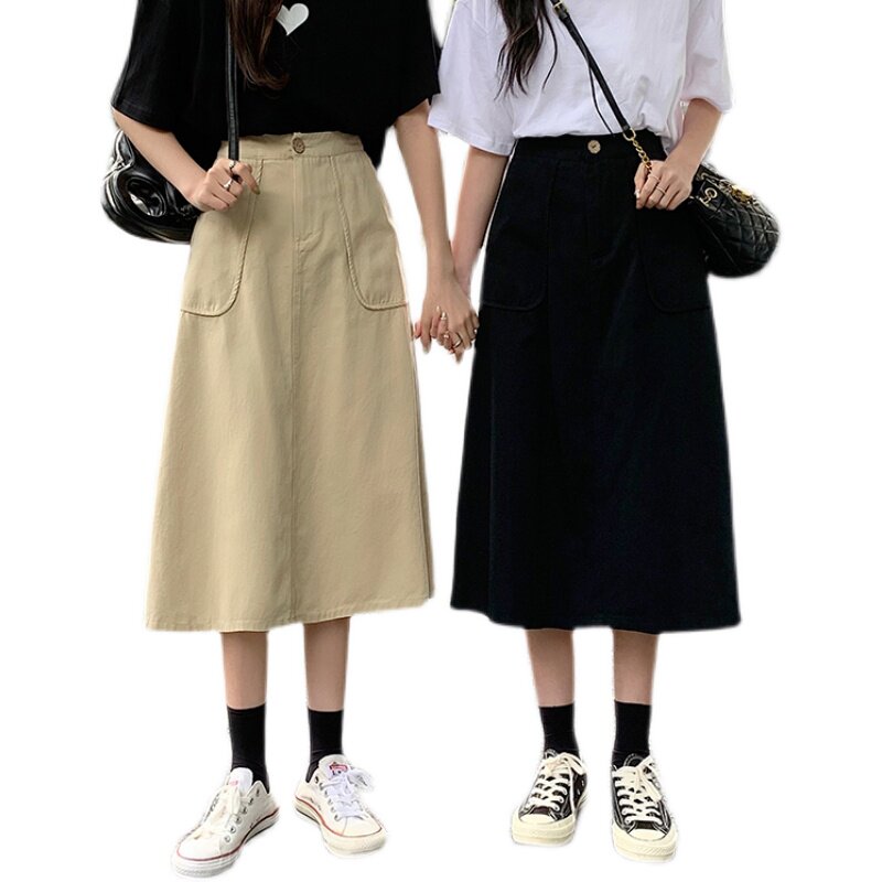 Хаки длинная юбка для школьников для отдыха, оверсайз, коллекция 2022, А-силуэт, высокая талия