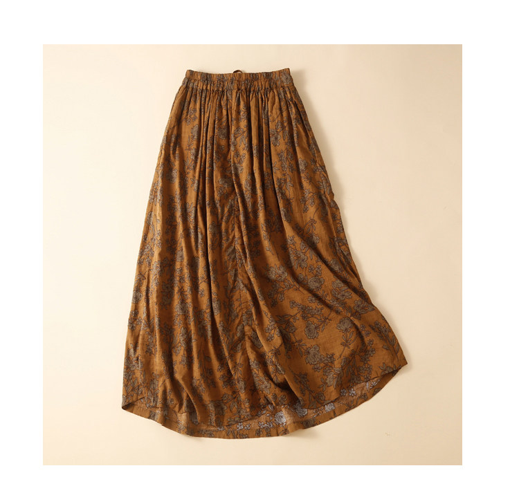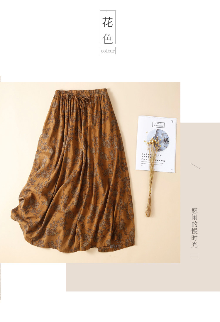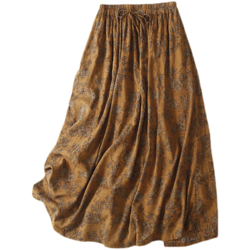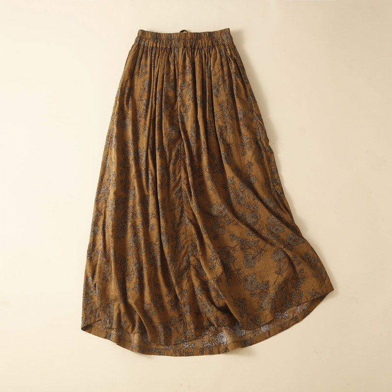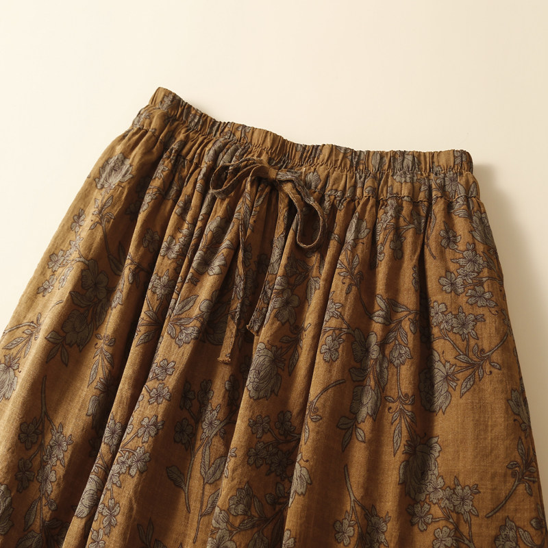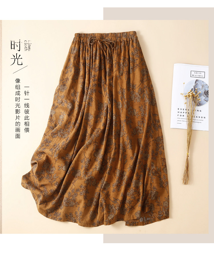 Длинная ретро длинная юбка, из хлопка и льна, А-силуэт