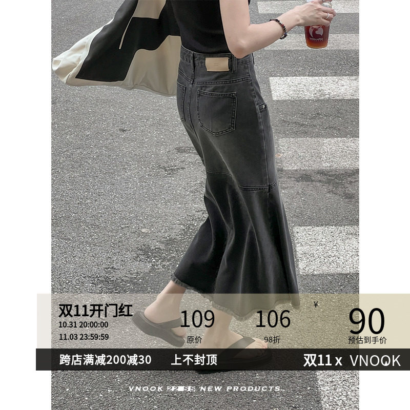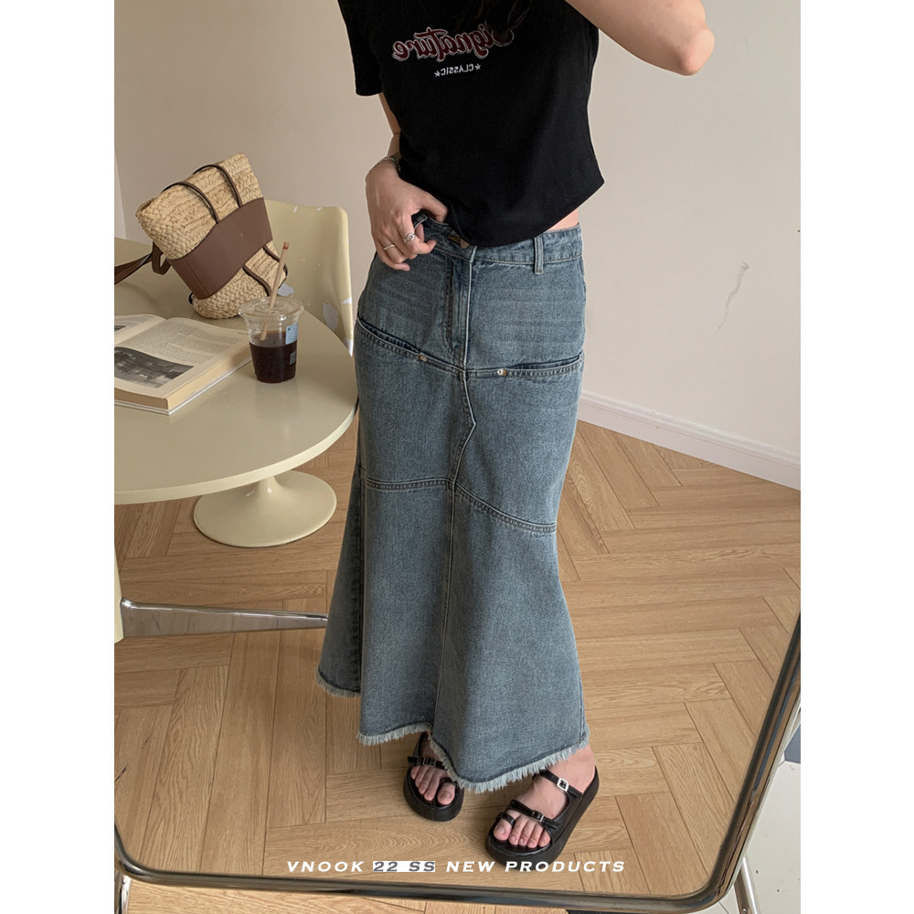Летняя сексуальная длинная джинсовая юбка, А-силуэт, крой «рыбий хвост», средней длины
