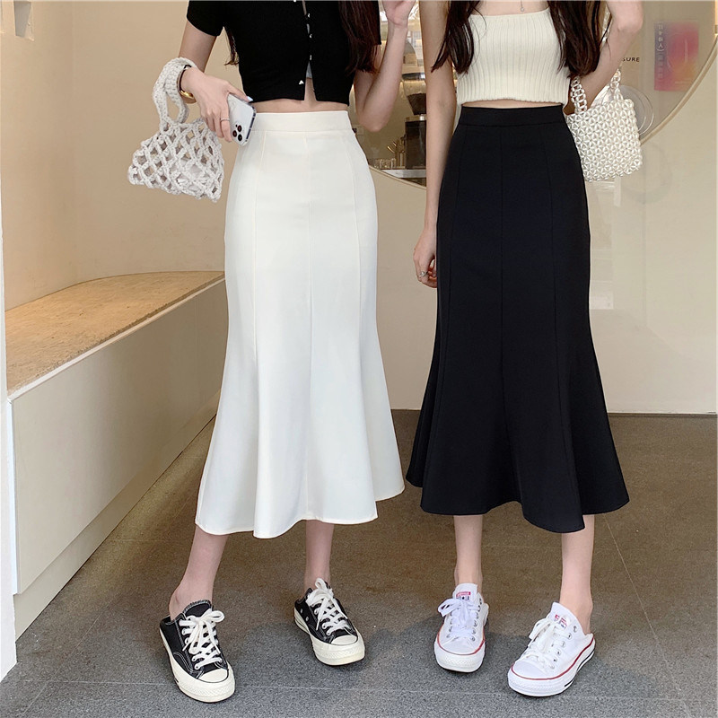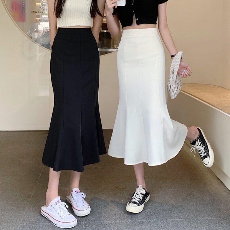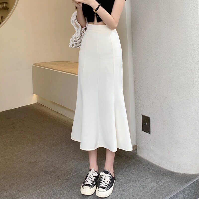 Летняя дизайнерская приталенная длинная юбка, крой «рыбий хвост», тренд сезона, средней длины, А-силуэт, с акцентом на бедрах