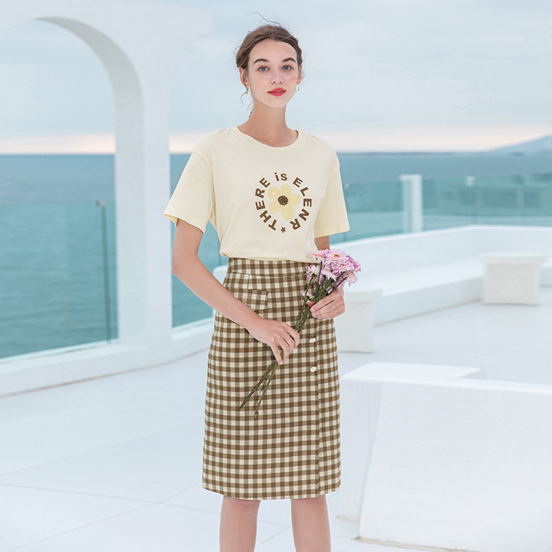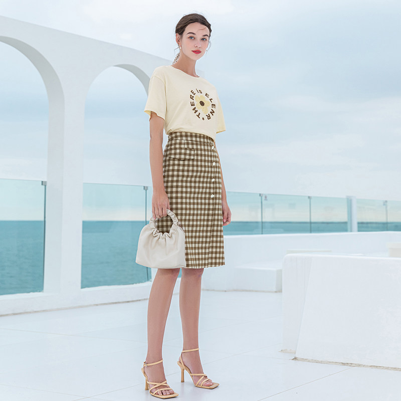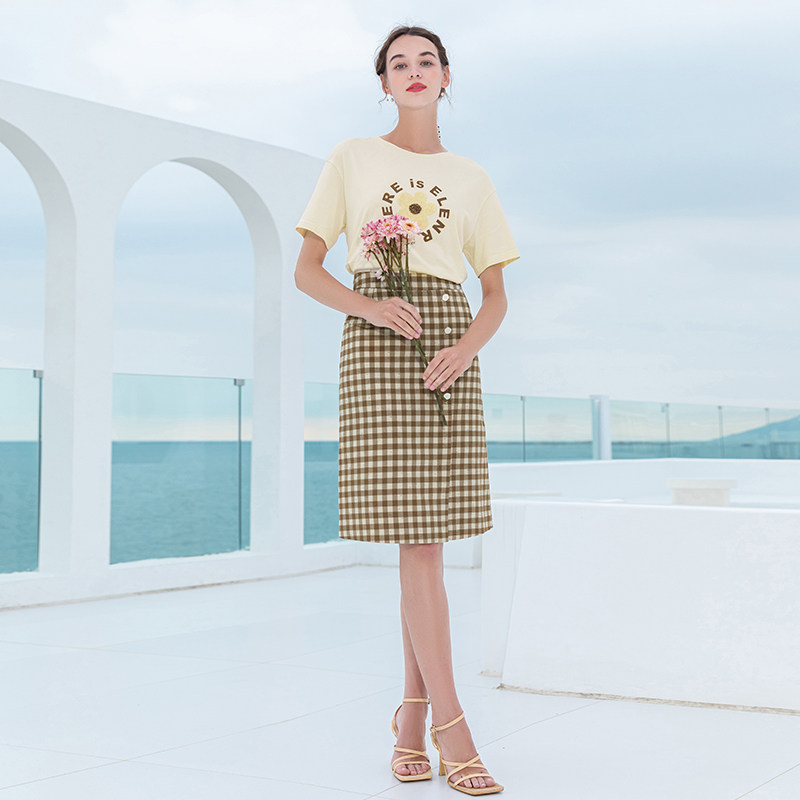 Клетчатая летняя длинная ретро юбка, городской стиль, средней длины, высокая талия